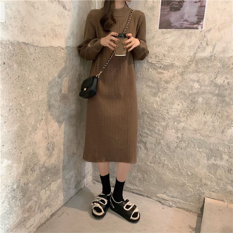 ニットゆったりワンピース秋物ウィンタースカート セーター オータム 冬物 ミドル丈 SPM67520073877