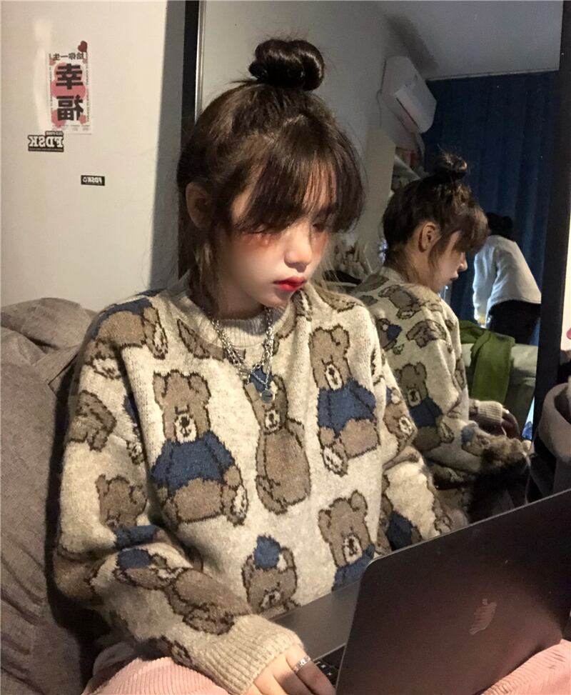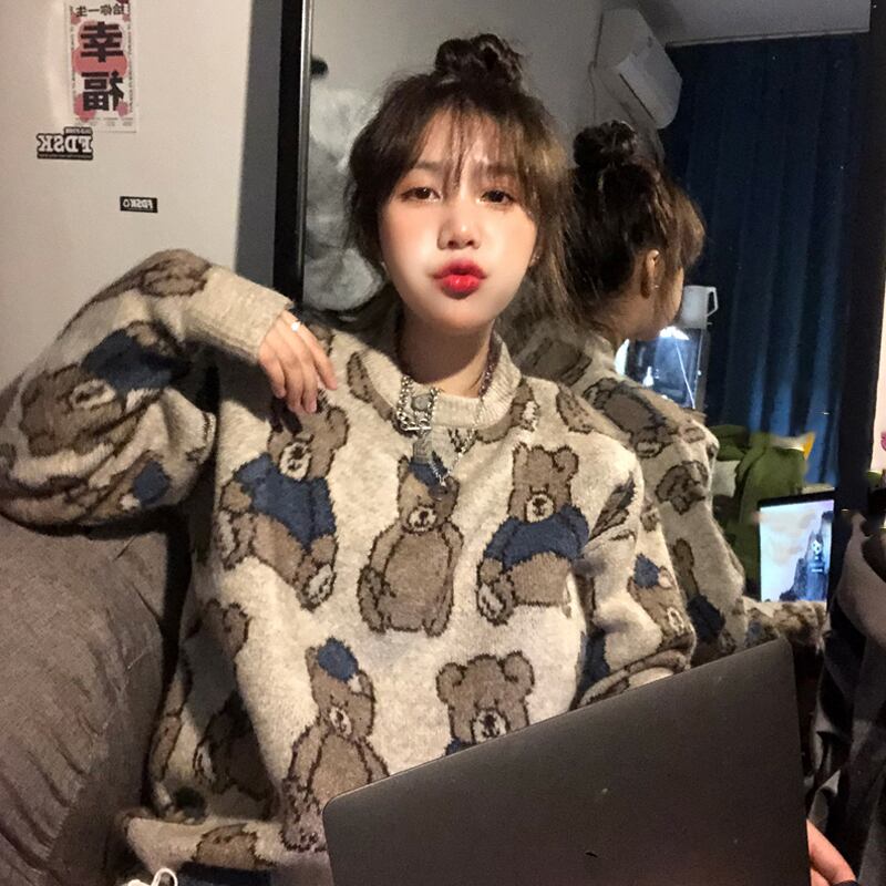 スプリング秋物セーター 韓国ファッションスタイルワイルドルーズヴィンテージトップス 春物 オータム ビンテージ SPM44039825746
