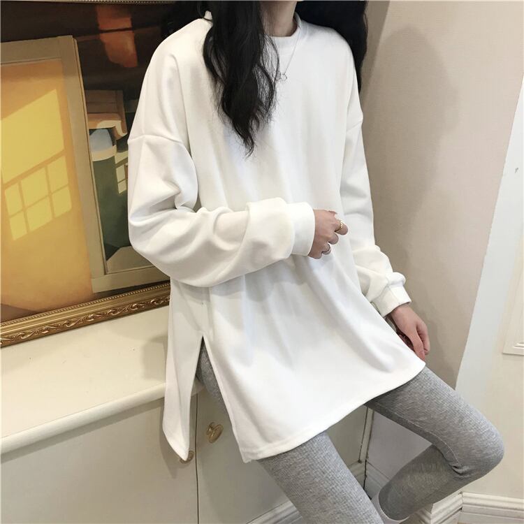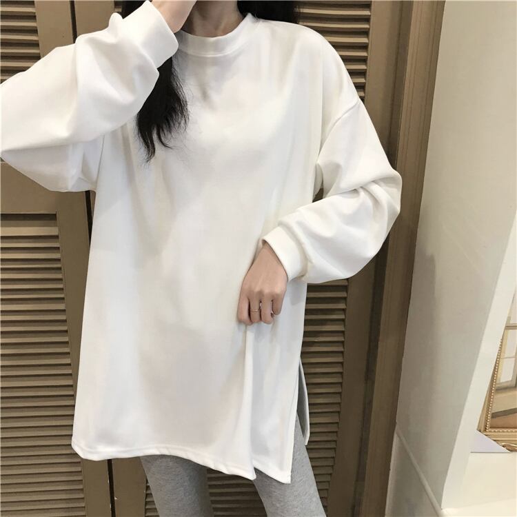 スプリングホワイトゆったりシャツ トップス 韓国ファッションルーズTシャツレディース ロング 春物 スタイル 長袖 SPM39462960195