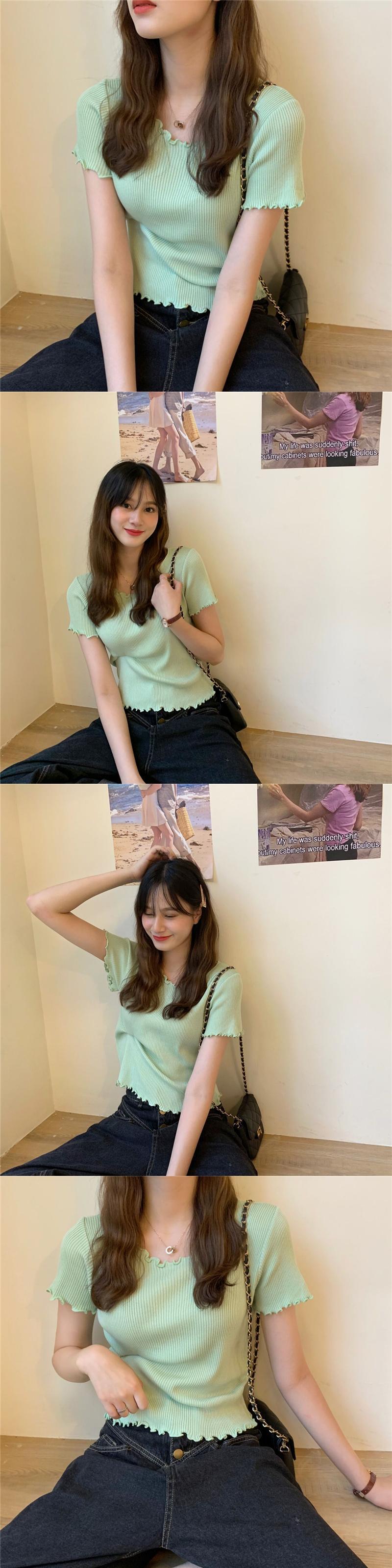 ショートニットTシャツスプリング韓国ファッションスタイルスリムトップス 春物 ワンナンバー51328015129