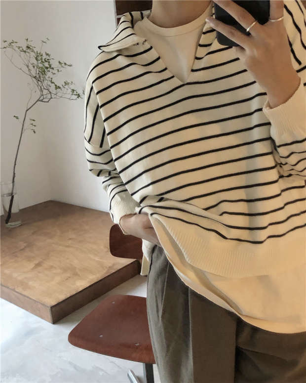 スタイルストライプセーター コート スプリング韓国ファッションスタンダードトップス ロング レトロ 春物 長袖 ミドル丈 MONROE98297492161