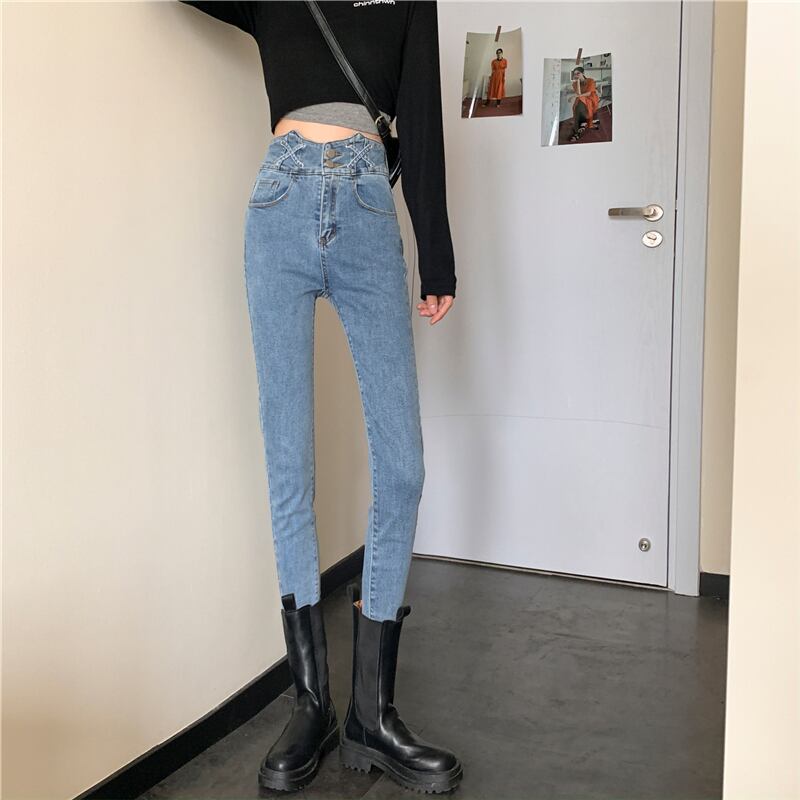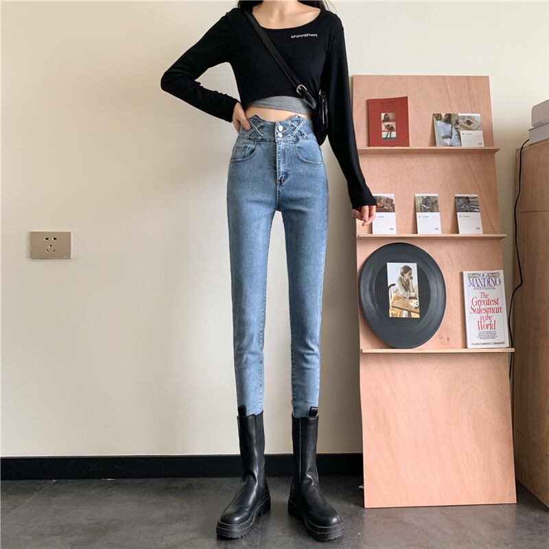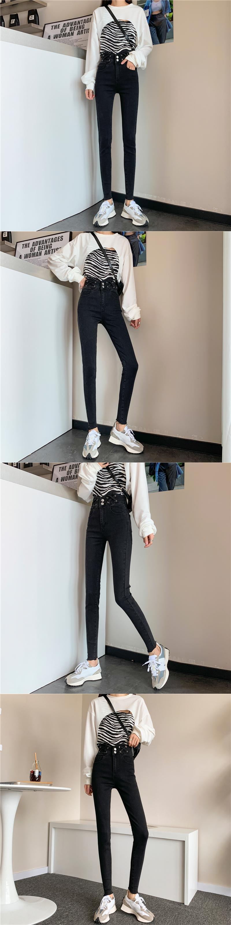 スプリングパンツ ハイウェストウェストジーンズ 秋物スリム 春物 オータム ウエスト SPM6770145391