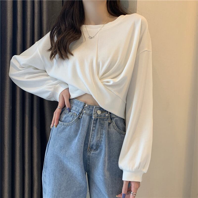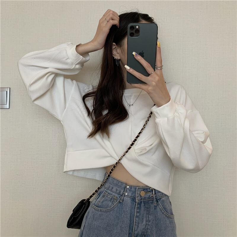 ホワイトショートセーター スプリング薄手秋物トップス トレンド 春物 オータム SPM22664146573