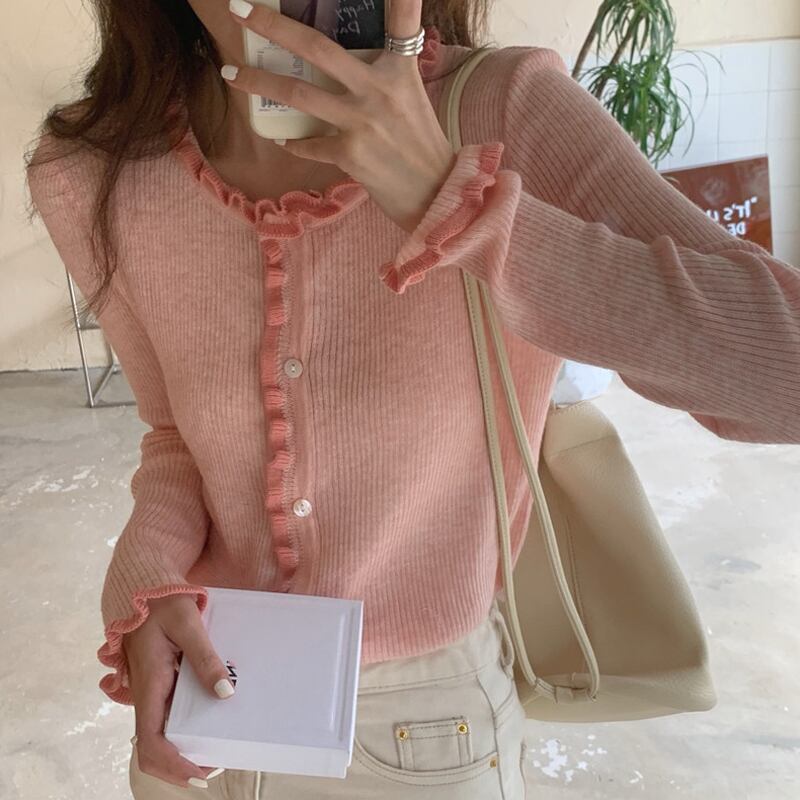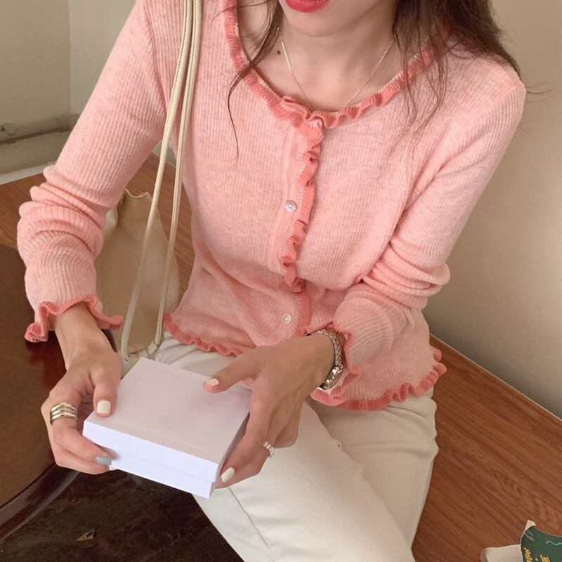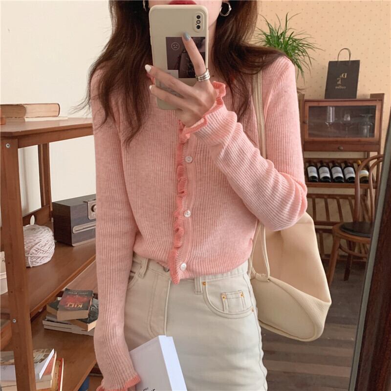 ニットカーディガンスプリング秋物セーター ジャケット ショートトップス ピンク 春物 オータム SYJ99681371672