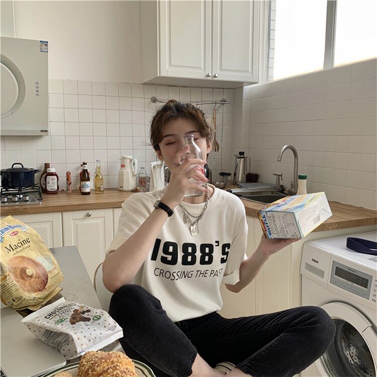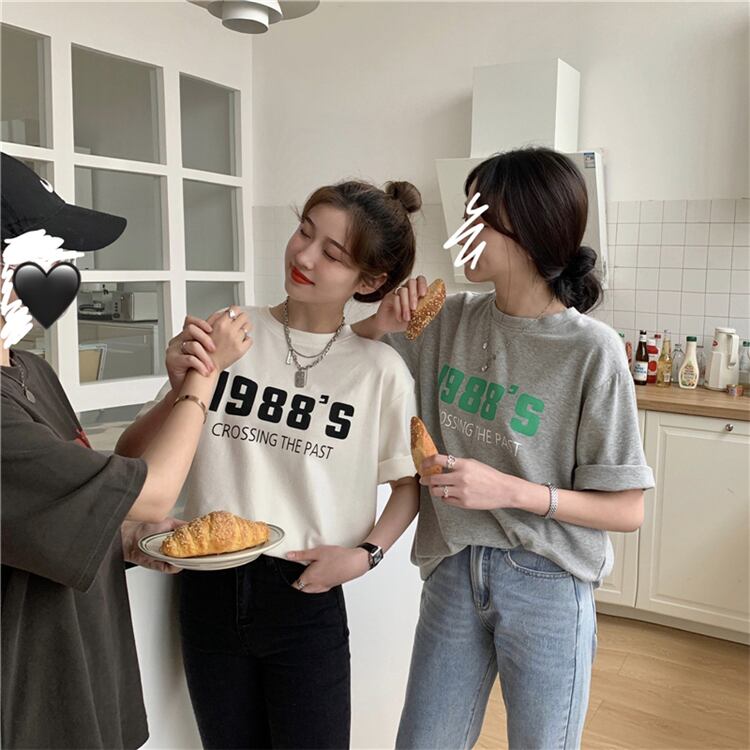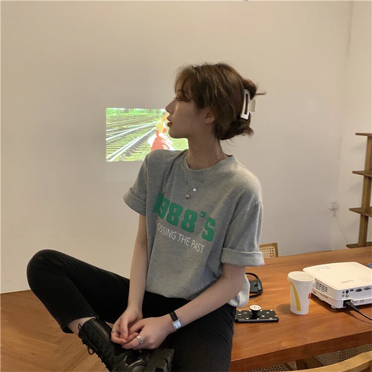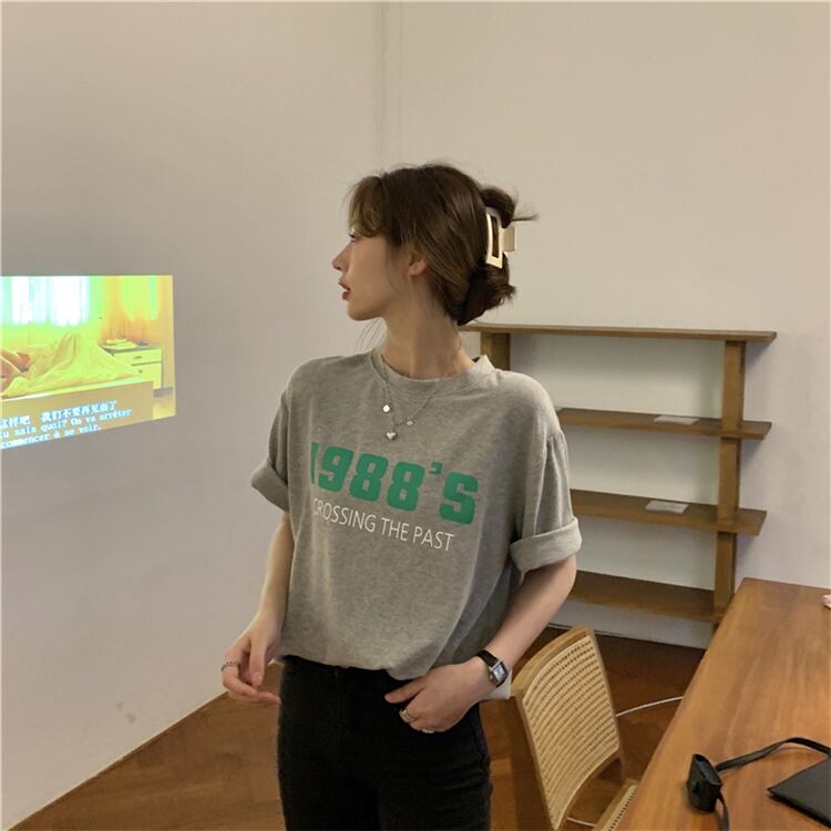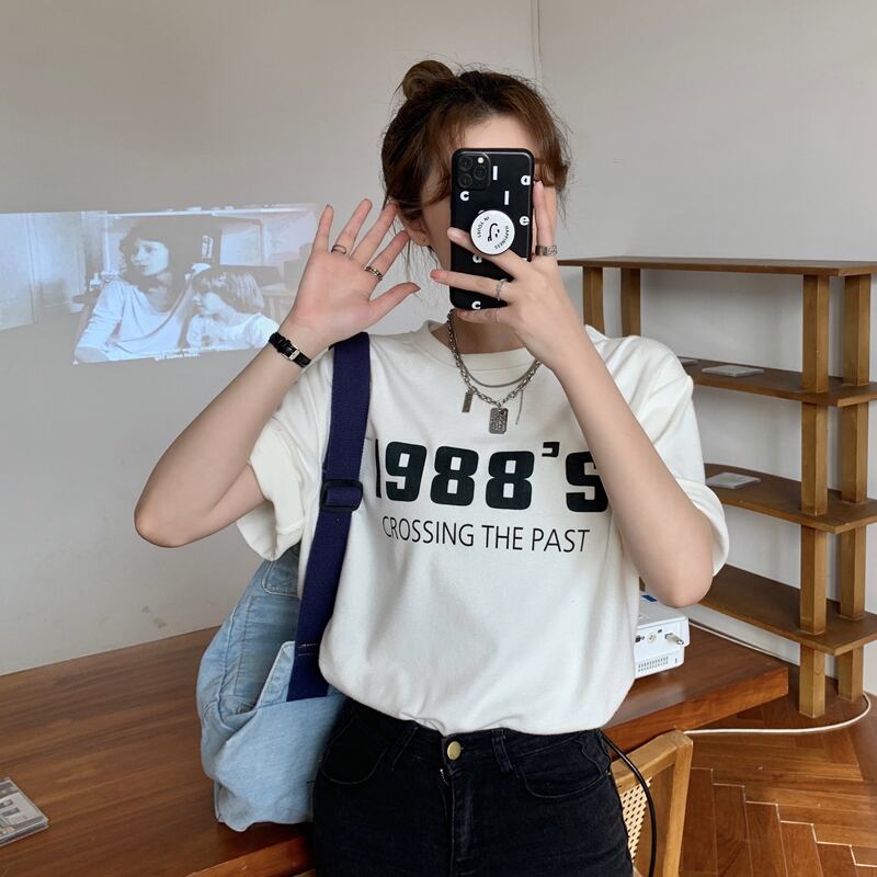 プリントTシャツレディーススプリング韓国ファッションルーズ薄手ラウンドネックトップス トレンド 春物 Oネック スタイル SPM25567258108