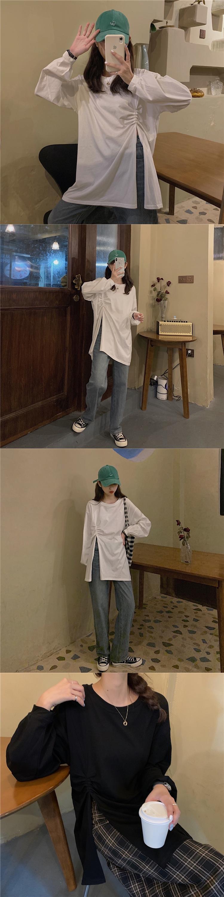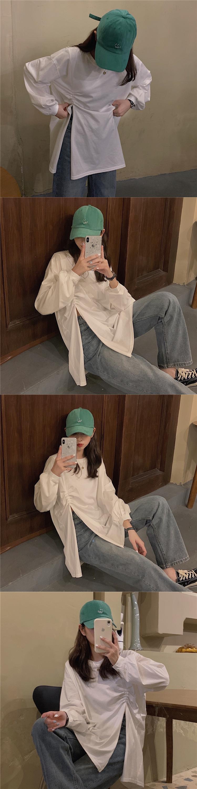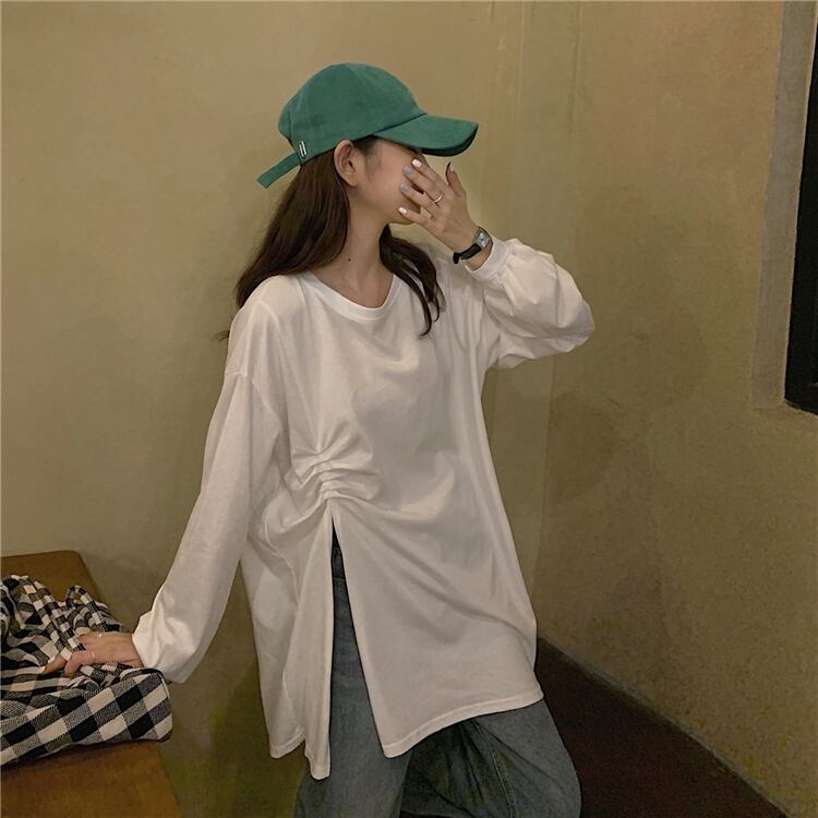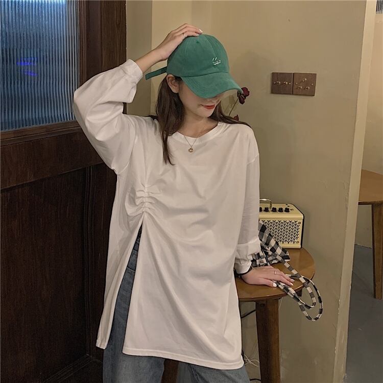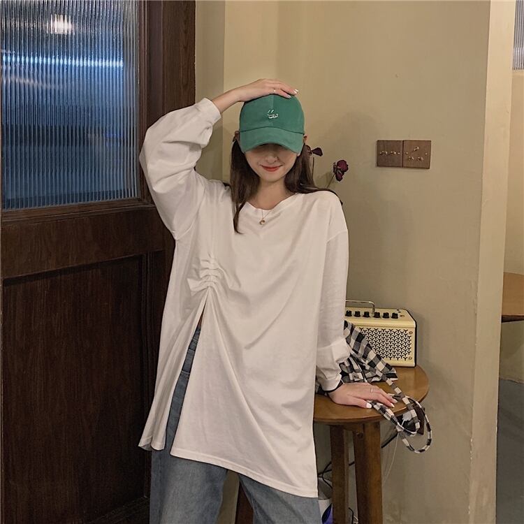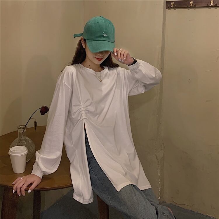 スプリングホワイトゆったりシャツ トップス Tシャツ ロング 春物 長袖 SPM86520079612