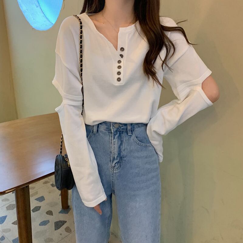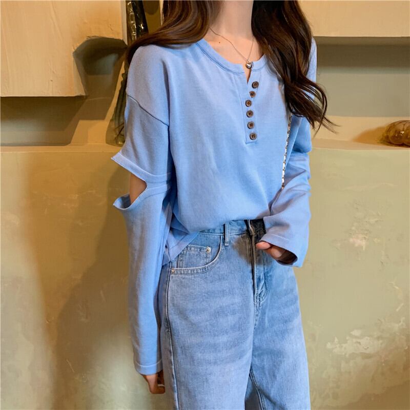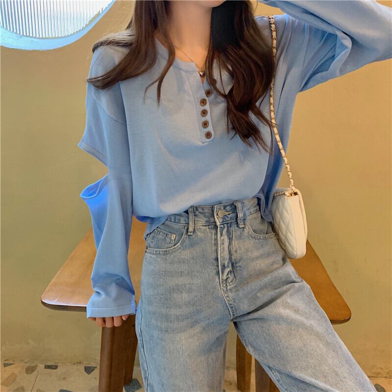 ソリッド カラーゆったりシャツ 韓国ファッショントップス スプリングTシャツレディース ロング 春物 ソリッドカラー スタイル 長袖 SYJ5031099540