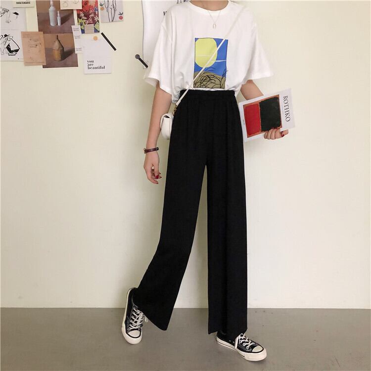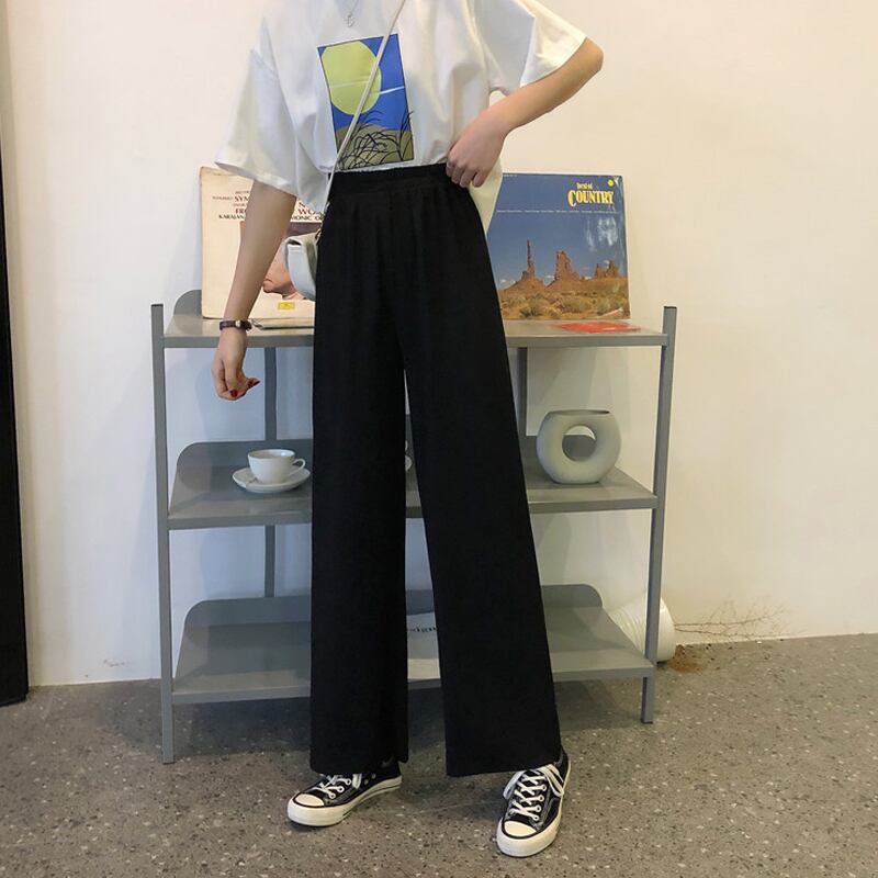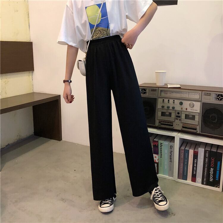 ブラックカジュアルパンツ レディーススプリング秋物韓国ファッションスタイルハイウェストウェストルーズ 春物 オータム ウエスト SPM68984235988