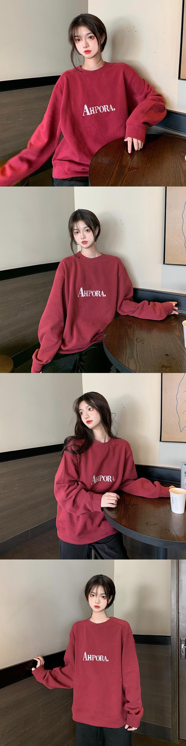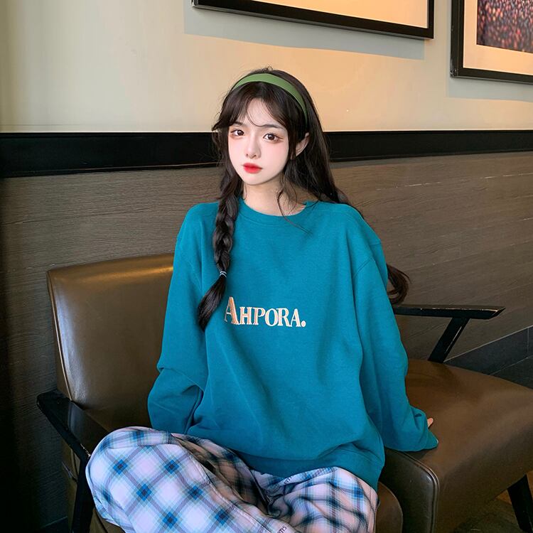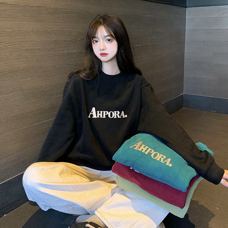 ラウンドネックセーター レディーススプリング秋物韓国ファッションルーズ刺繍トップス 春物 オータム Oネック スタイル SPM11232366972