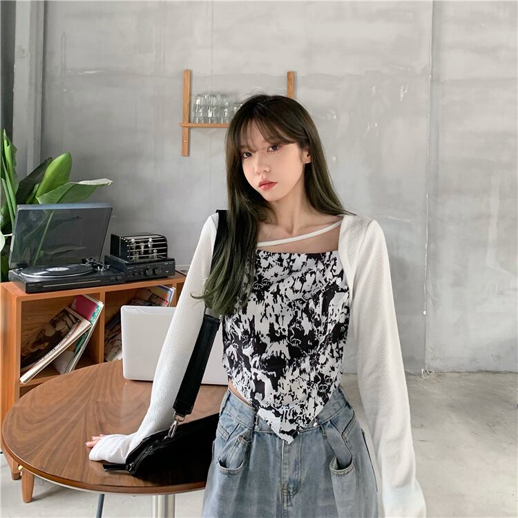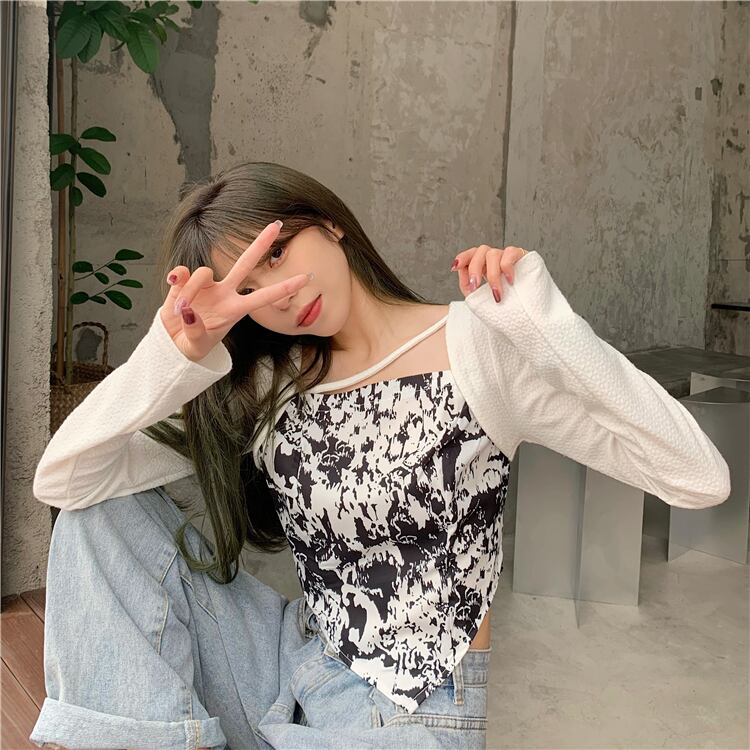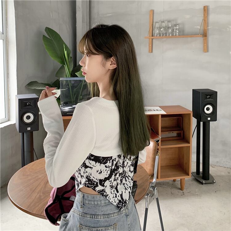 Tシャツレディーススプリング秋物カラーショートトップス トレンド ロング 春物 オータム スクウェア 長袖 SYJ82075535986