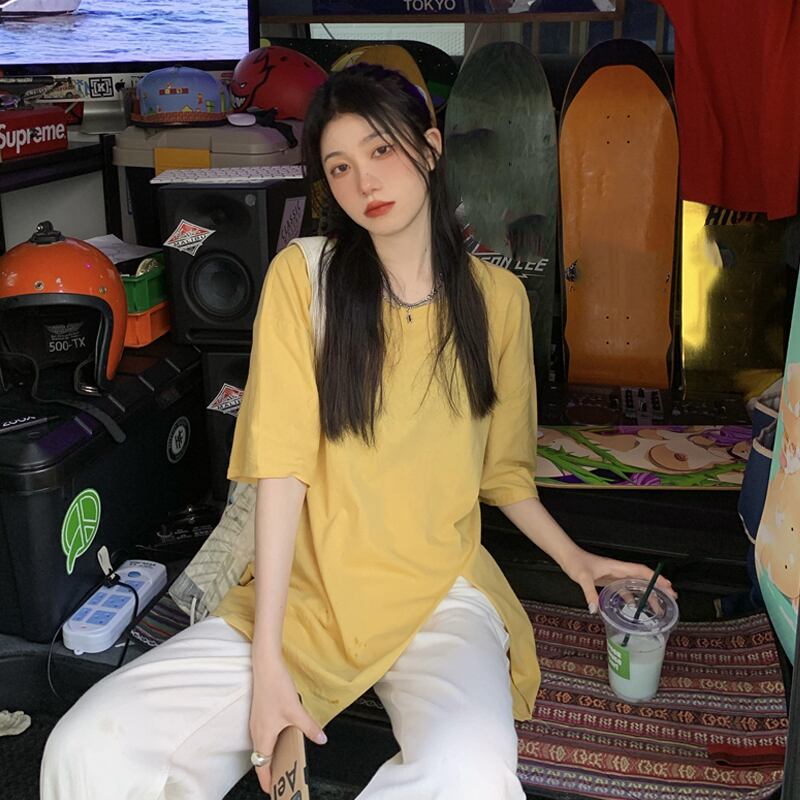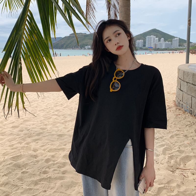ホワイトTシャツ夏服ルーズエンドトレンド 夏物 ミドル丈 SYJ76096211047