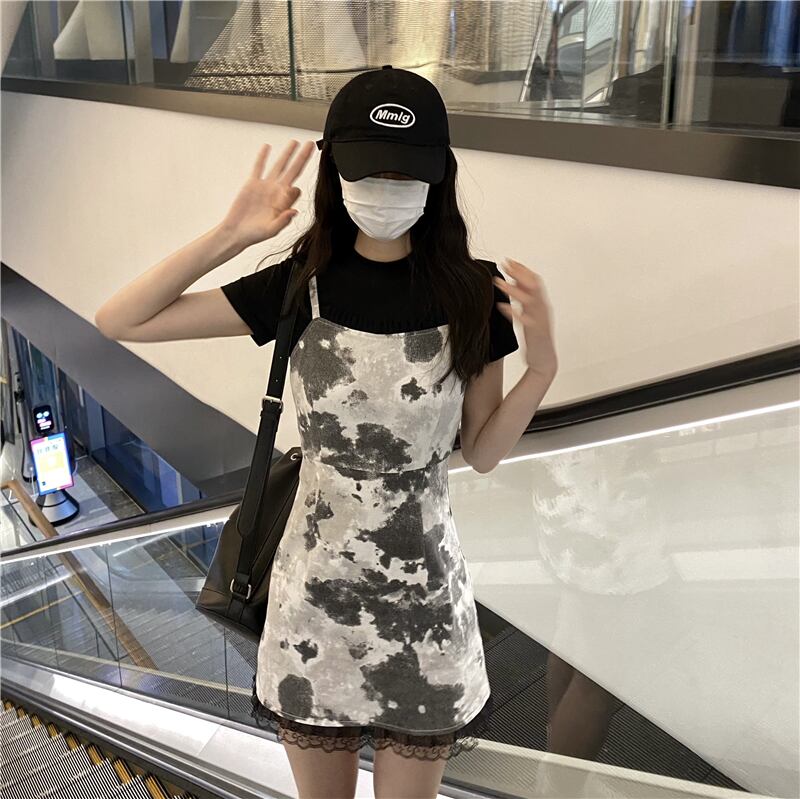 色:黒いTシャツ,タイダイサスペンダースカート