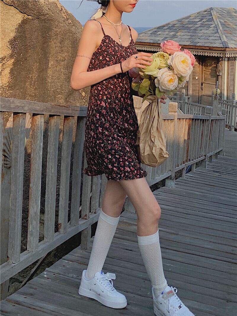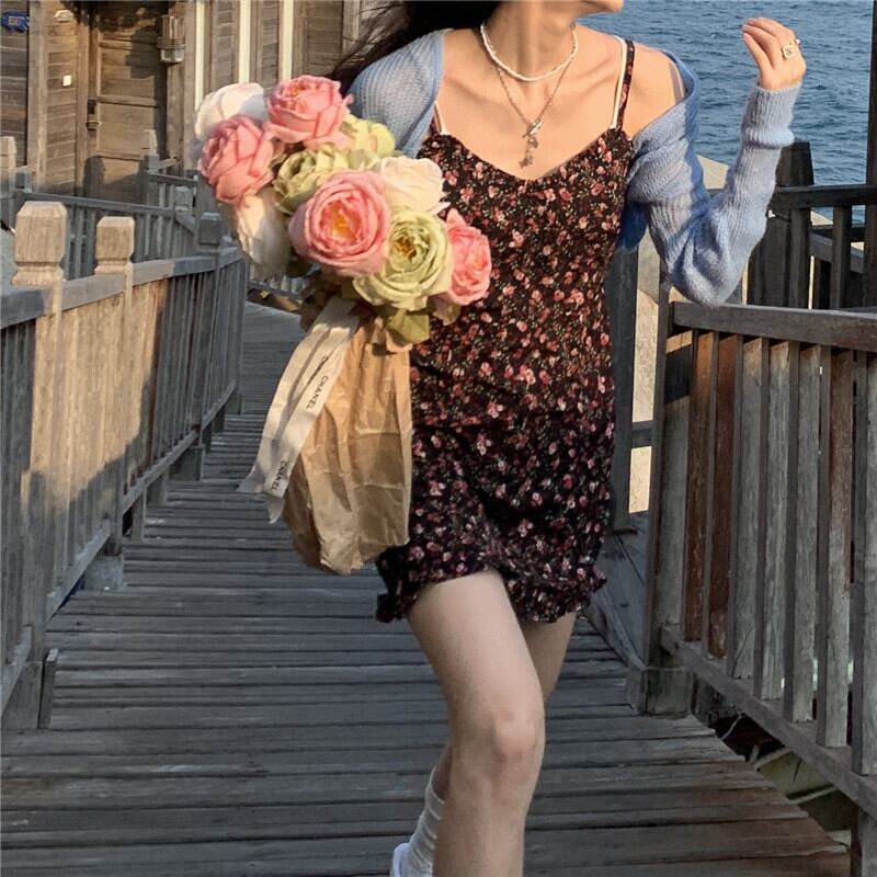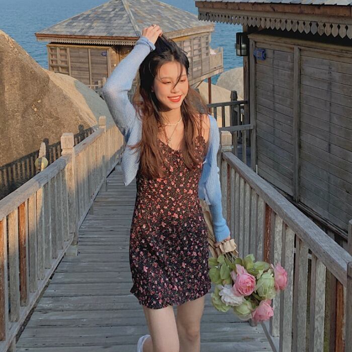 フローラルワンピースレディーススタンダードスカート 夏服ショートスリム レトロ 大人ガーリー スウィート キュート カジュアル 夏物 花柄 MONROE98105746530
