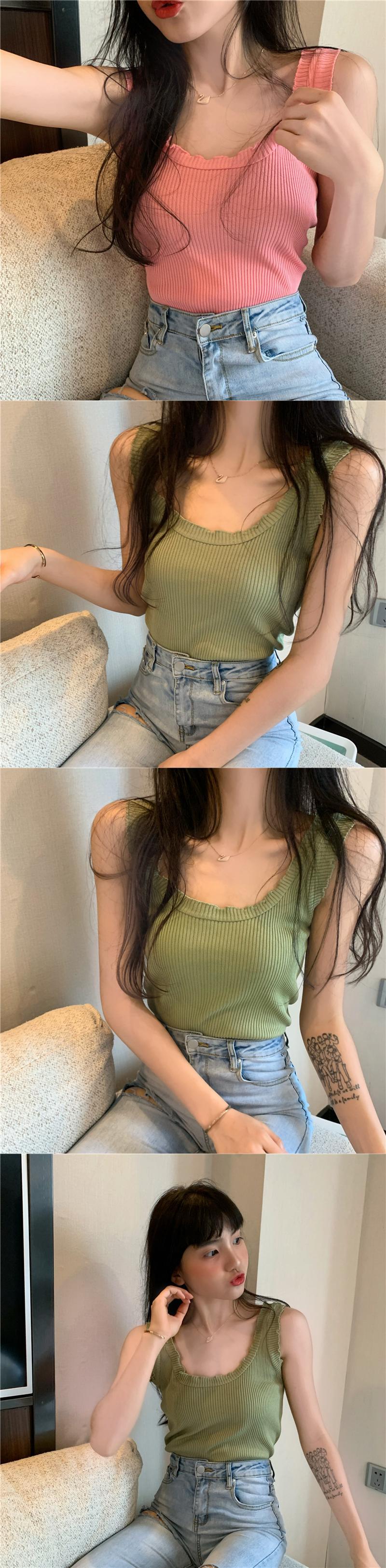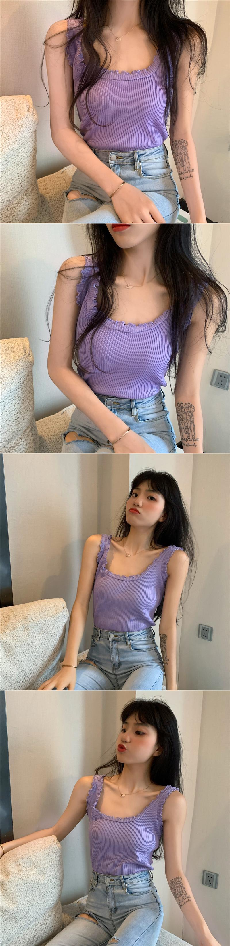 レースニットノースリーブトップス レディースホワイトゆったりシャツ 夏服トレンドショート 夏物 ワンナンバー37600438436