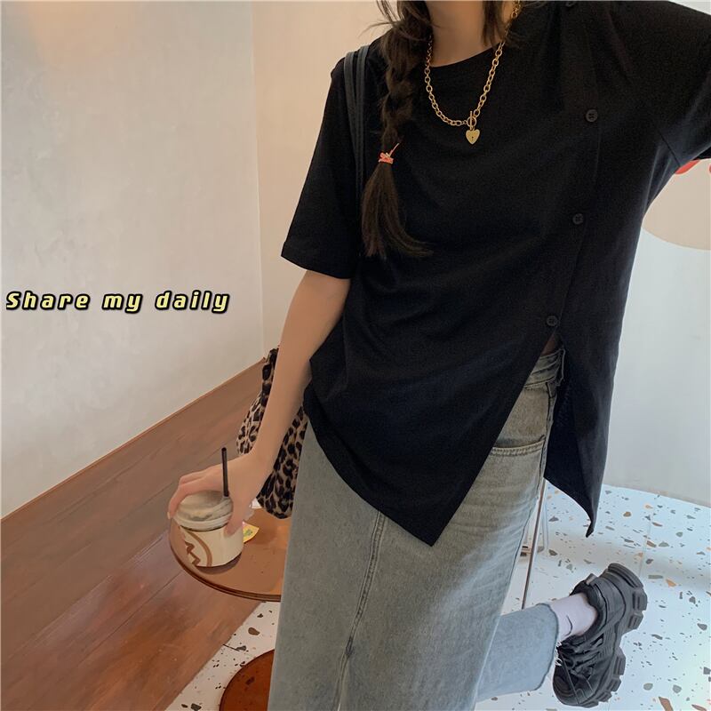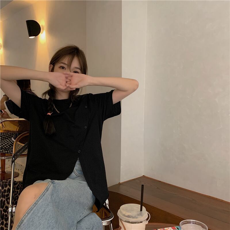 ブラックTシャツレディース韓国ファッションルーズ半袖スリーブ夏服トレンド ショート ハーフスリーブ 夏物 スタイル MONROE60455427919