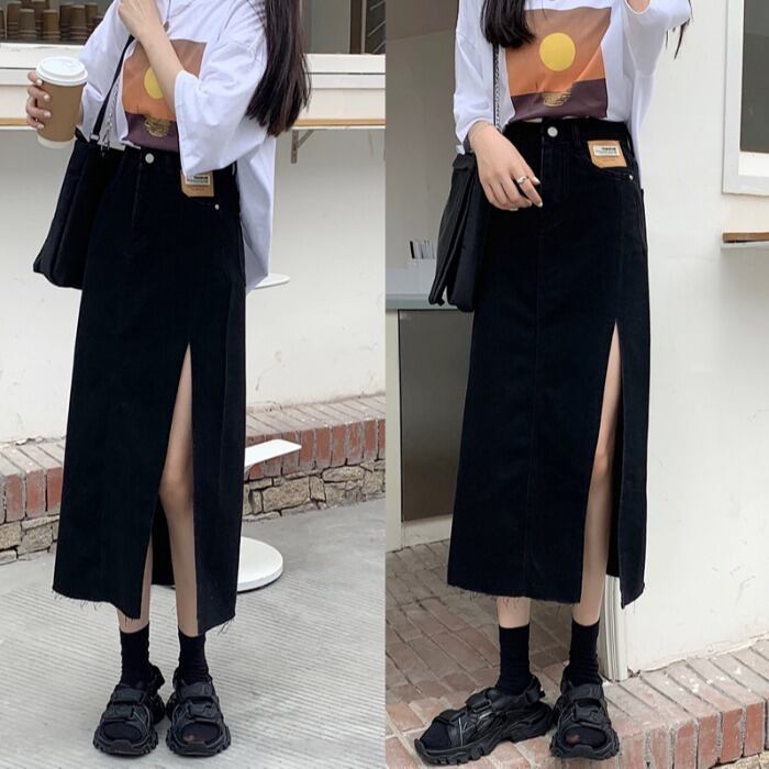 ブラックスカート レディーススプリング夏服ハイウェストウェストAラインロング 春物 夏物 ウエスト MONROE43828121538