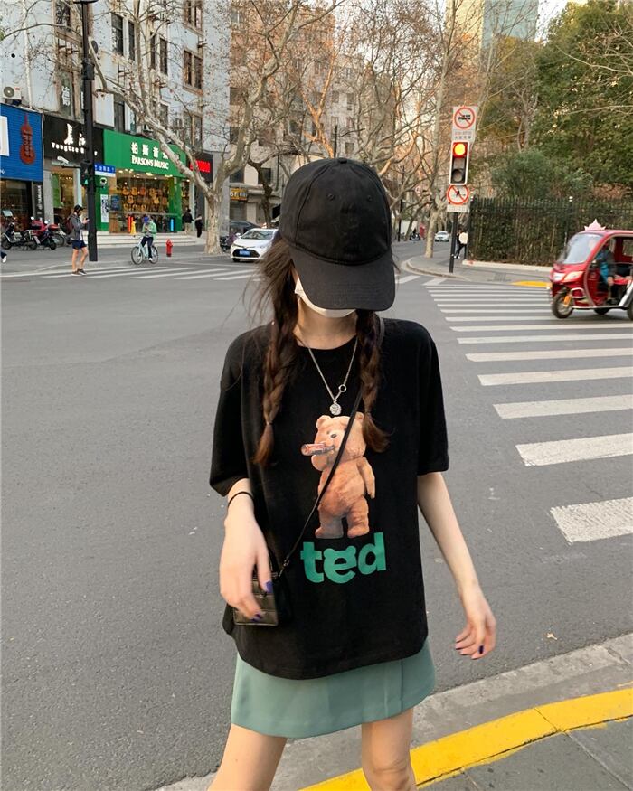 ブラックTシャツレディースルーズ夏服トレンドトップス コットン 夏物 ピュア MONROE76956437713