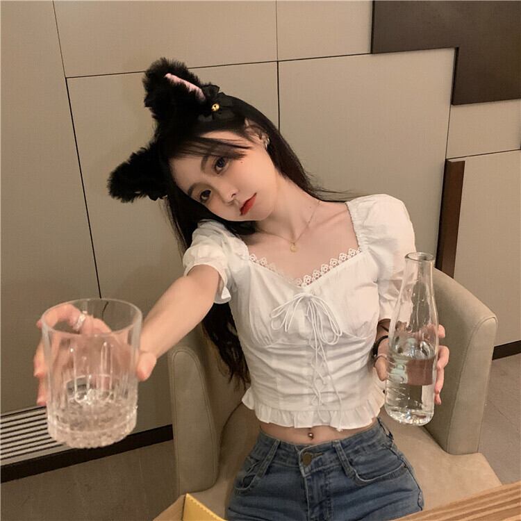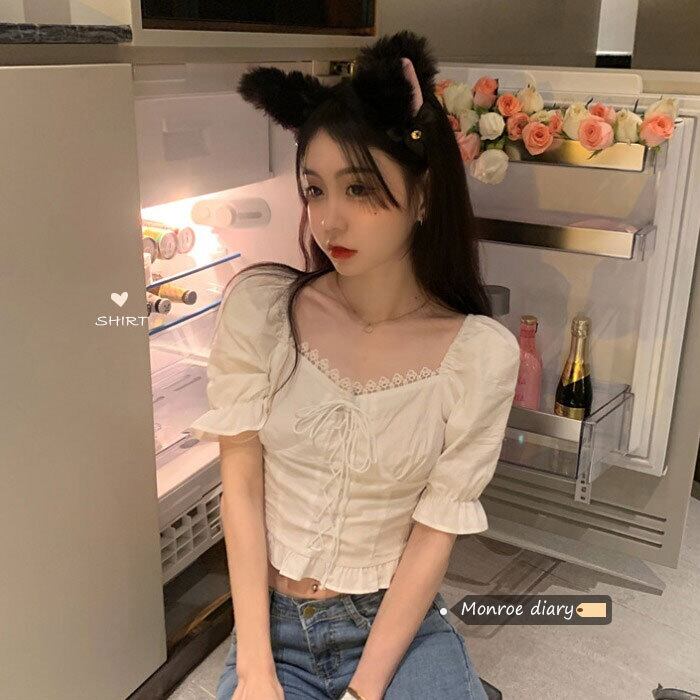 ホワイトシャツ ショートハイウェストクロップトップ トップス 夏服 夏物 ウエスト MONROE58429334209