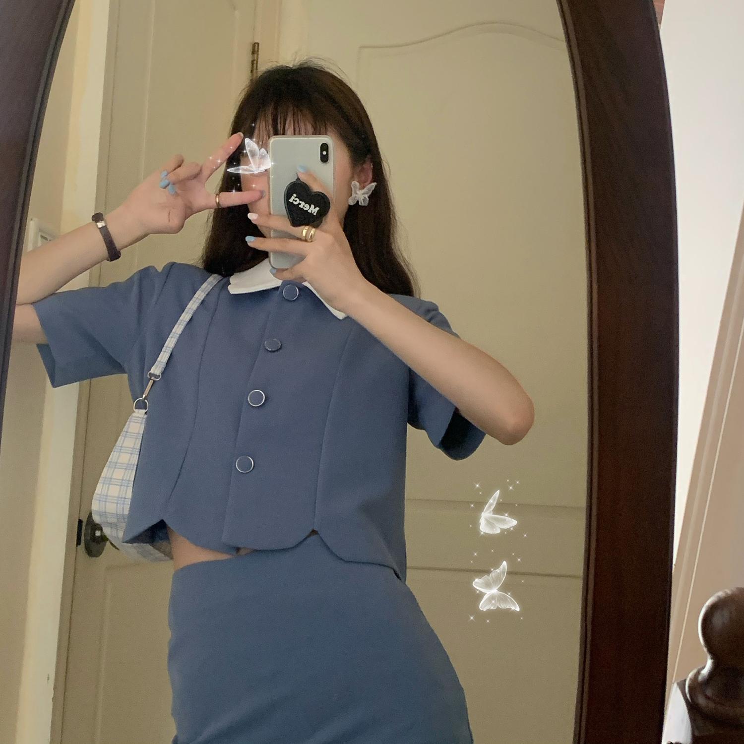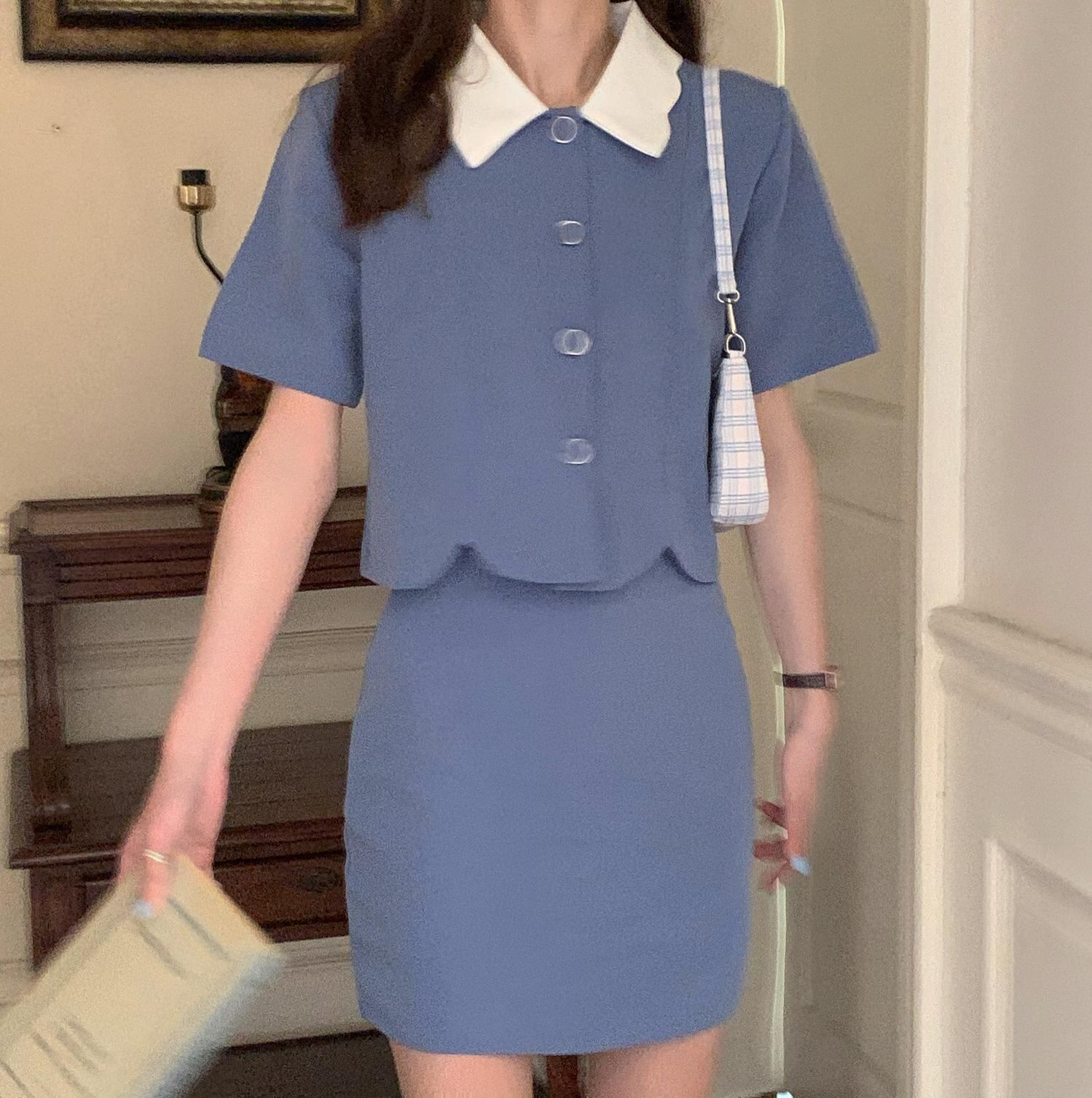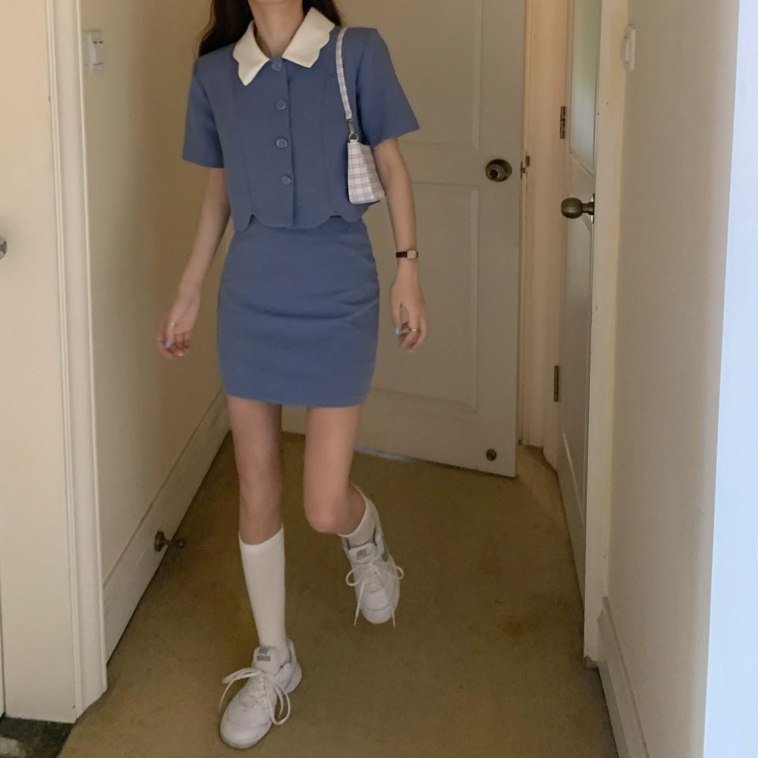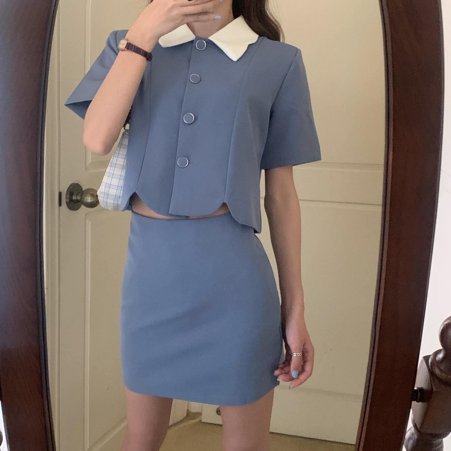 色:ブルートップ2683,ブラックトップ2683,ブルーショートスカート2685,黒のスカート2685