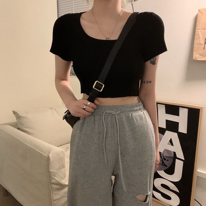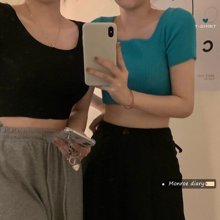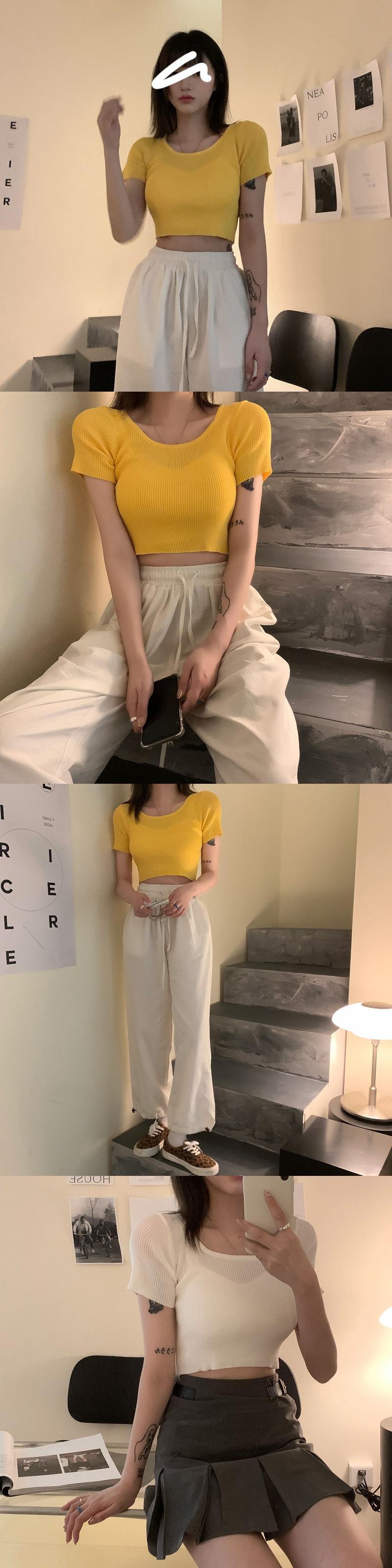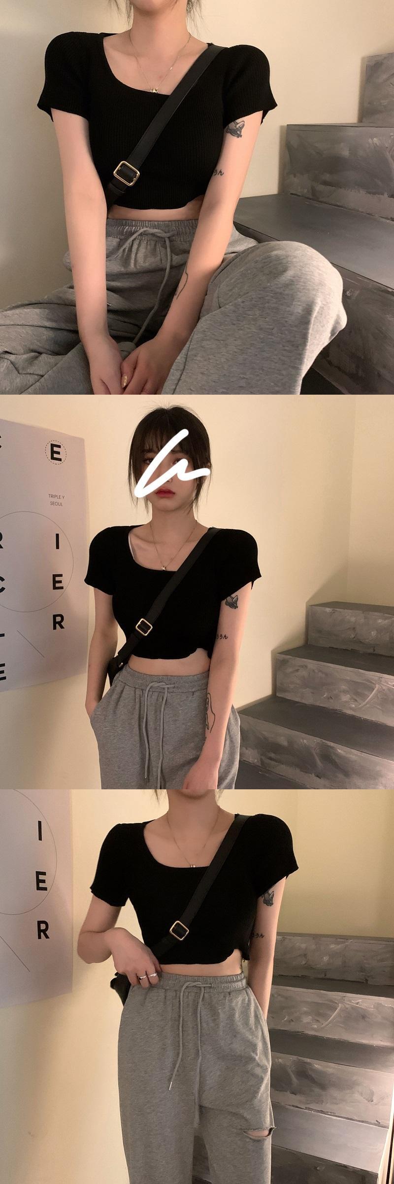 ニットTシャツショート夏服クロップドトップス 夏物 MONROE89946611432