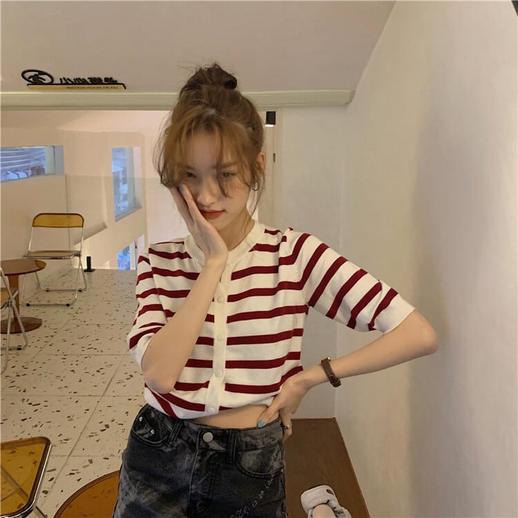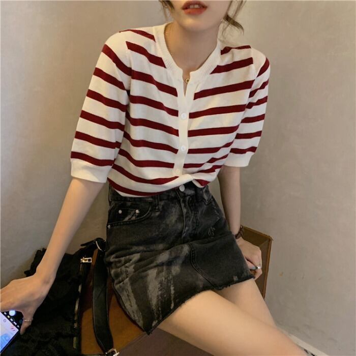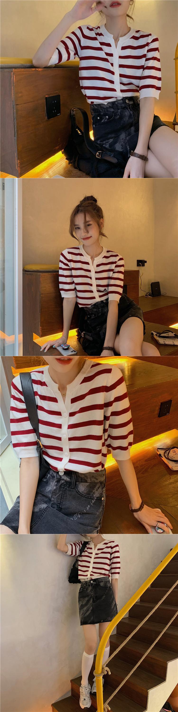 ストライプセーター 薄手コート 夏服ショートカーディガントップス トレンド 夏物 MONROE14411366261