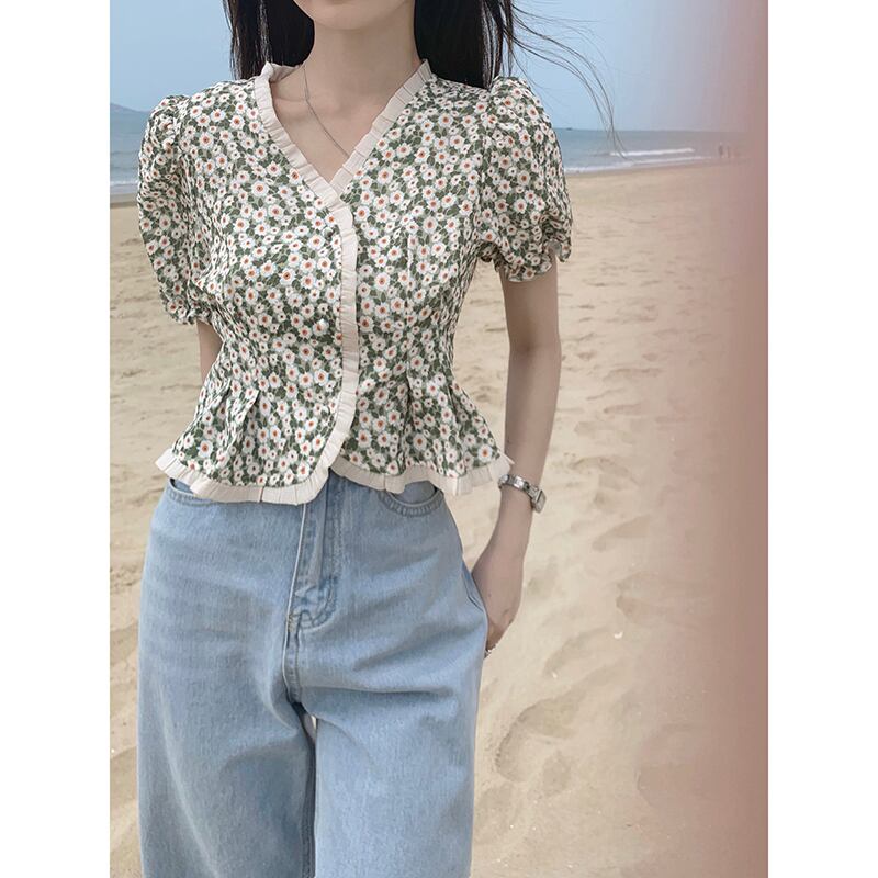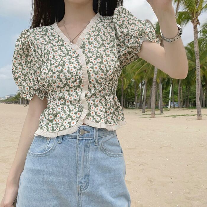 ホワイトシャツ レディースショート夏服ハイウェストウェストクロップトップ トップス コート 夏物 ウエスト MONROE57303598627