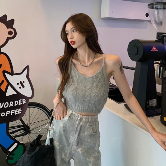 ニットレディースゆったりノースリーブショートジャケット トップス トレンド MONROE23780735363