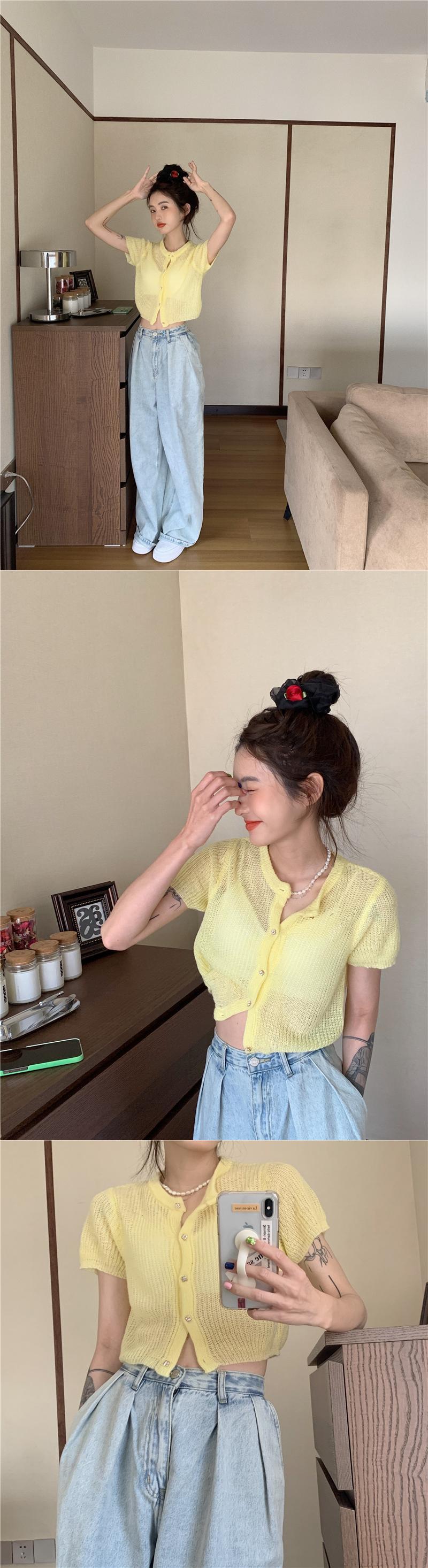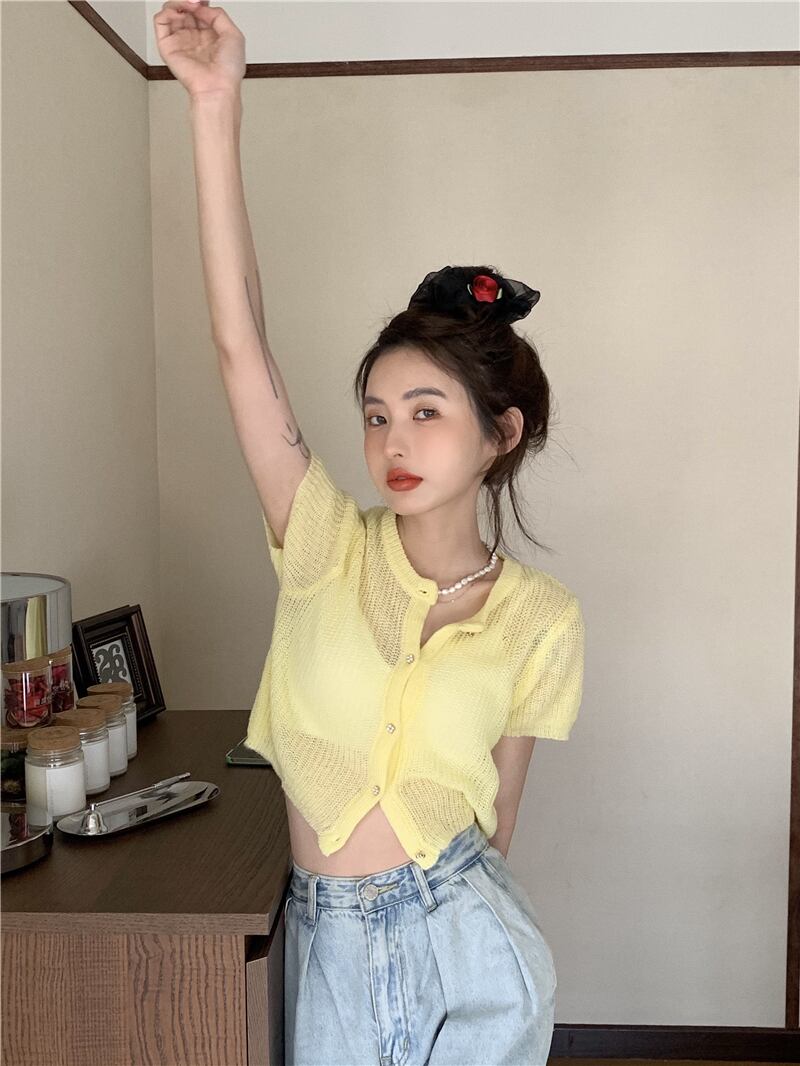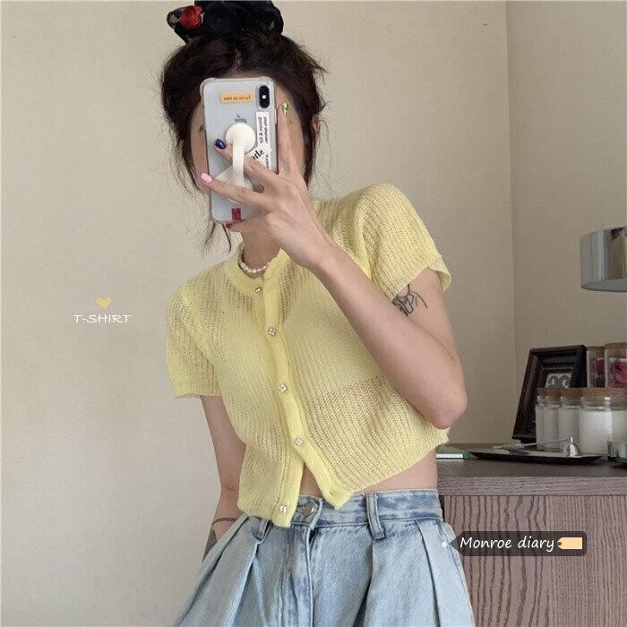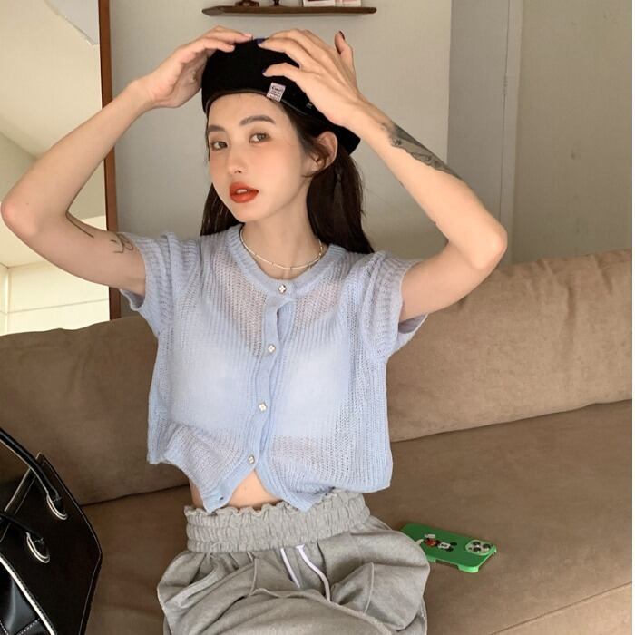 薄手ニットセーター ショート夏服クロップドカーディガントップス コート 大人ガーリー スウィート キュート カジュアル 夏物 MONROE24916601685