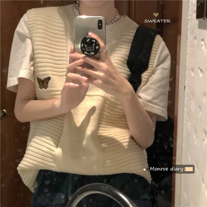 スタンダードVネックニットレディースルーズセーター スプリング韓国ファッショントップス レトロ 春物 ウエスト MONROE42404891873