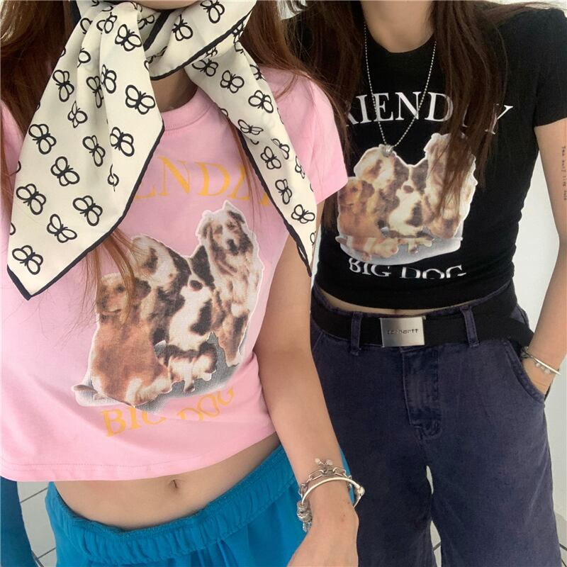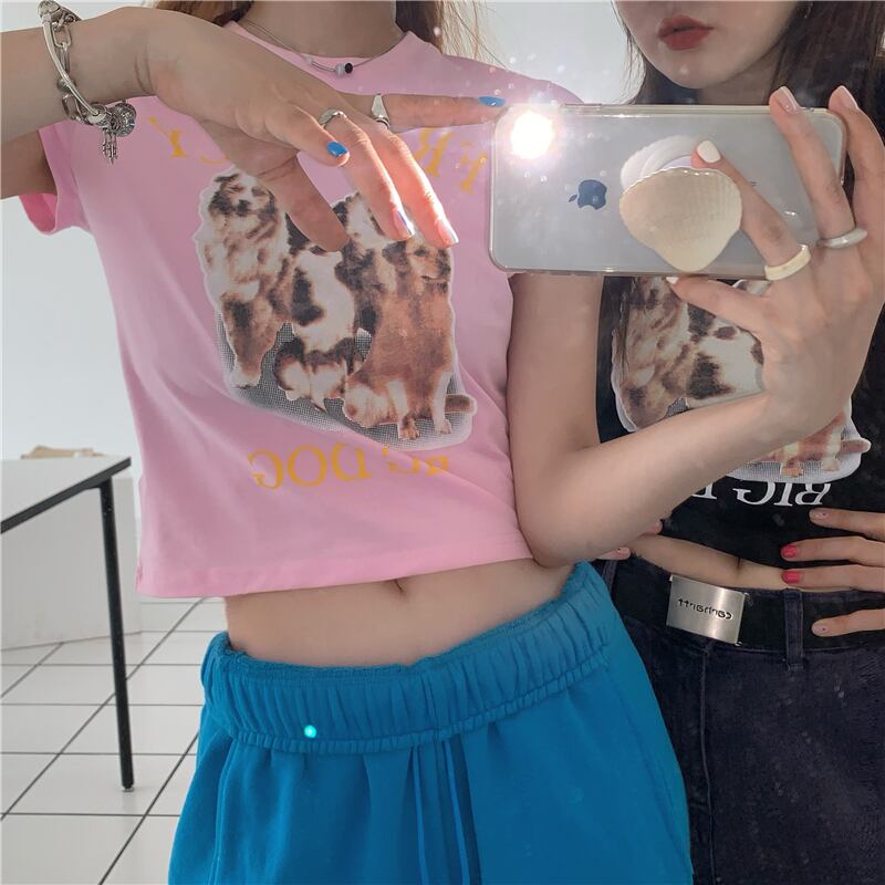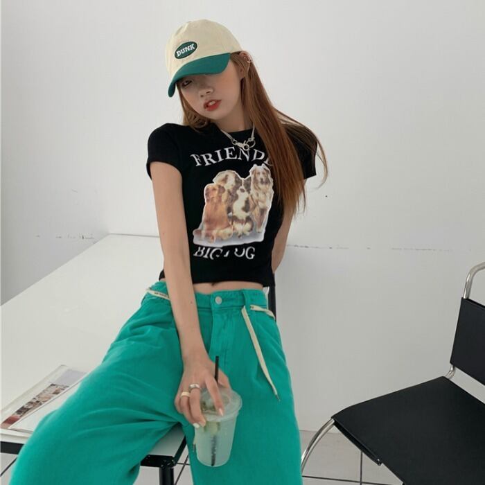Tシャツショート夏服トレンド韓国ファッションルーズハイウェストクロップドトップス コットン 夏物 ピュア スタイル ウエスト MONROE80444954294