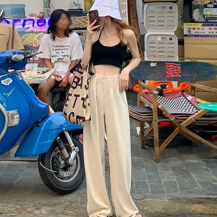 ウェストスリムカジュアルパンツ 薄手夏服ルーズワイドレッグトレンド 夏物 ワイドパンツ ウエスト MONROE79239991248
