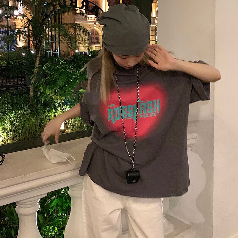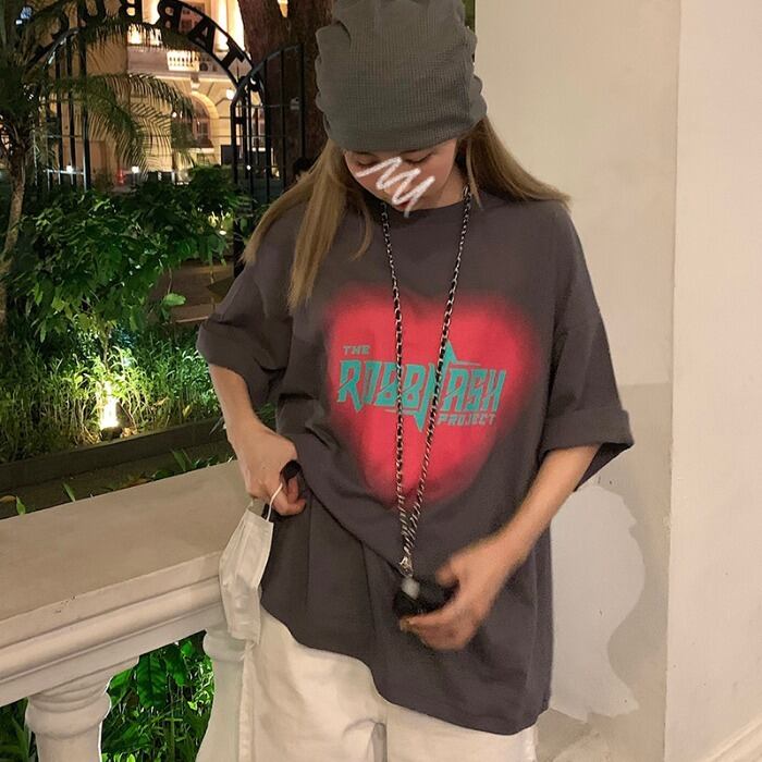プリントホワイトTシャツ夏服ルーズトップス 夏物 ミドル丈 MONROE26332411155