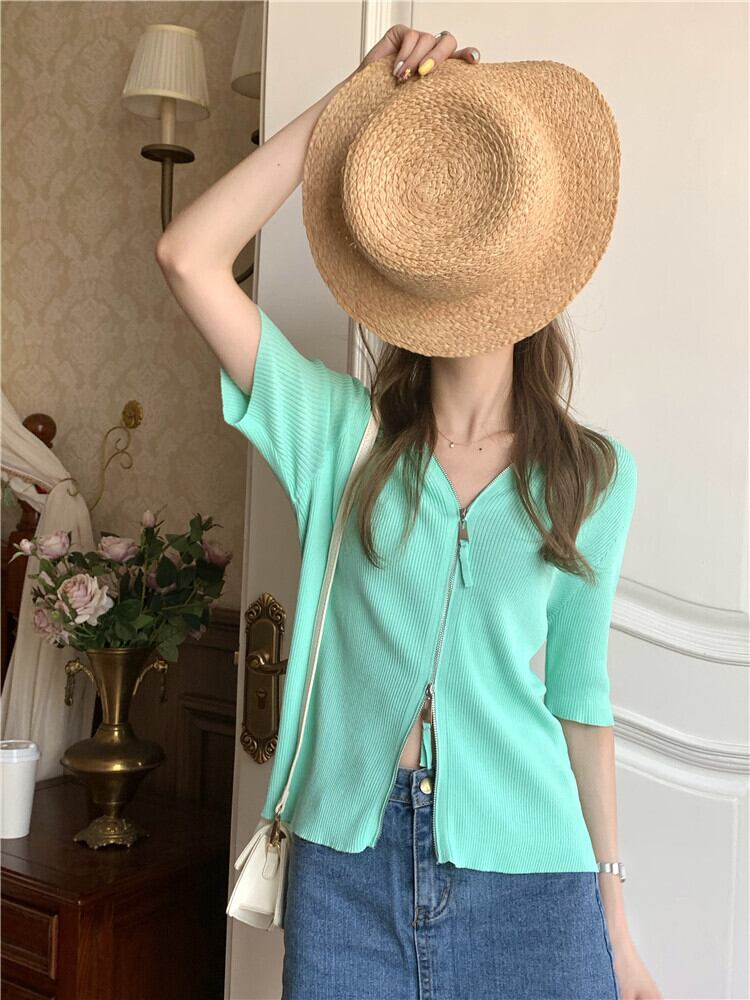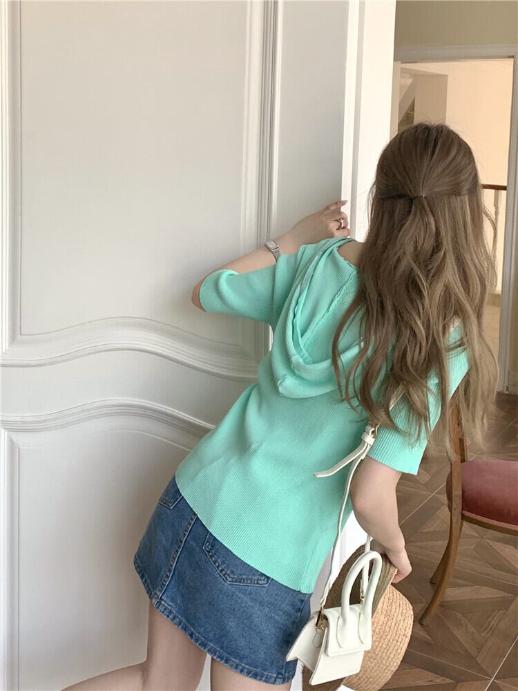 ショートセーター レディーススタンダードフードカーディガンジャケット スプリング夏服スタイルスリム レトロ 春物 夏物 MONROE83456748608