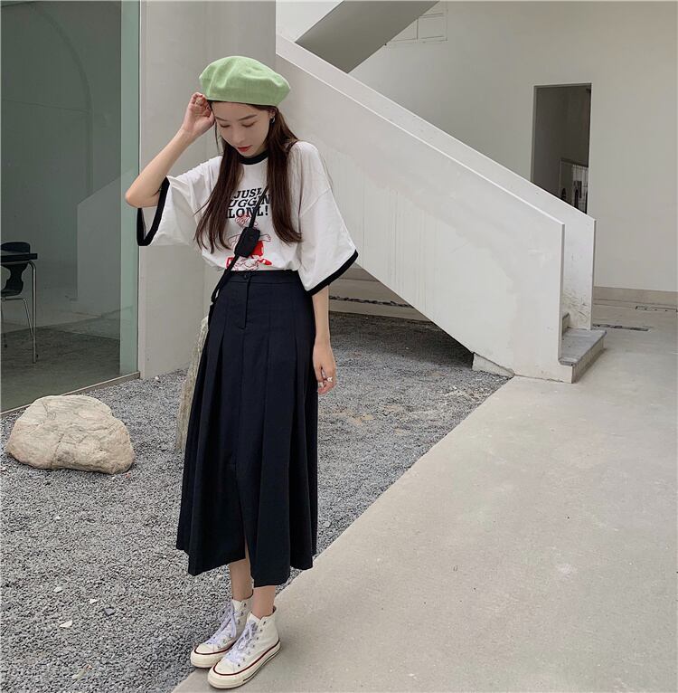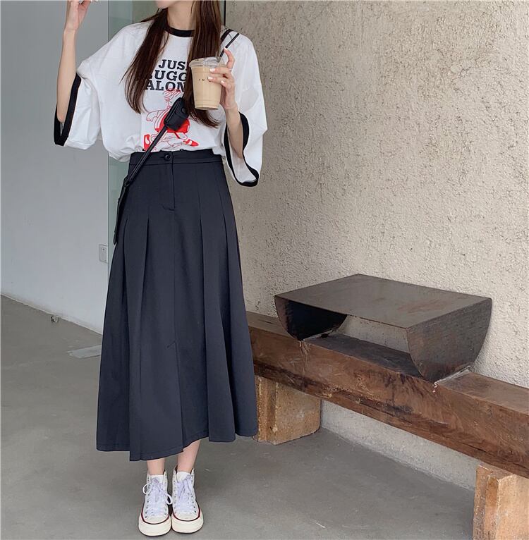 グレープリーツスカート 薄手ハイウェストスプリング夏服Aラインロング 春物 夏物 ウエスト MONROE54676274202