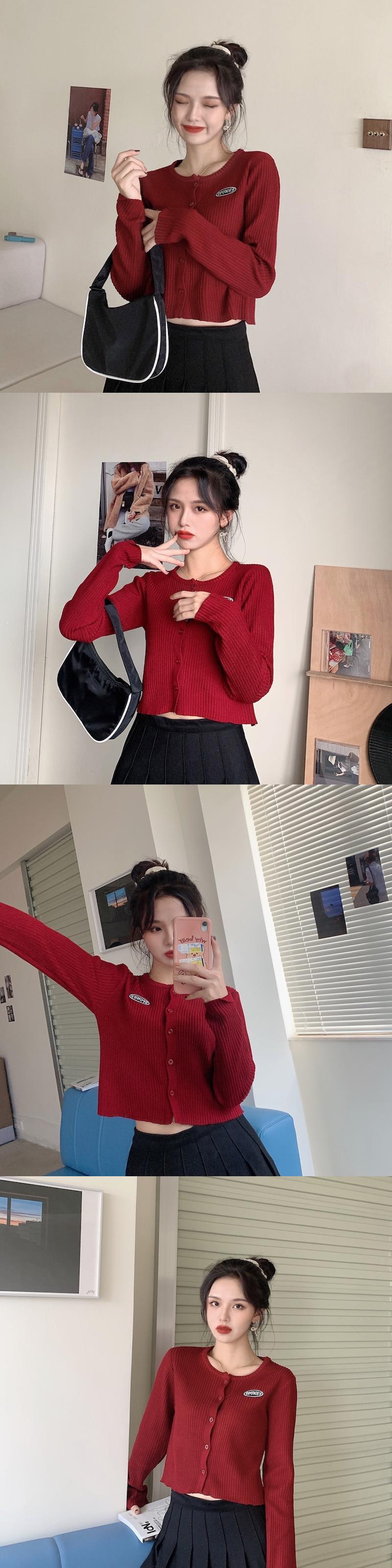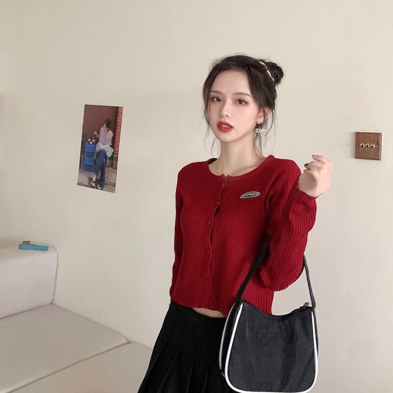 レッドセーター ジャケット スプリング秋物薄手ニットカーディガンクロップドトップス 春物 オータム SYJ30066900306
