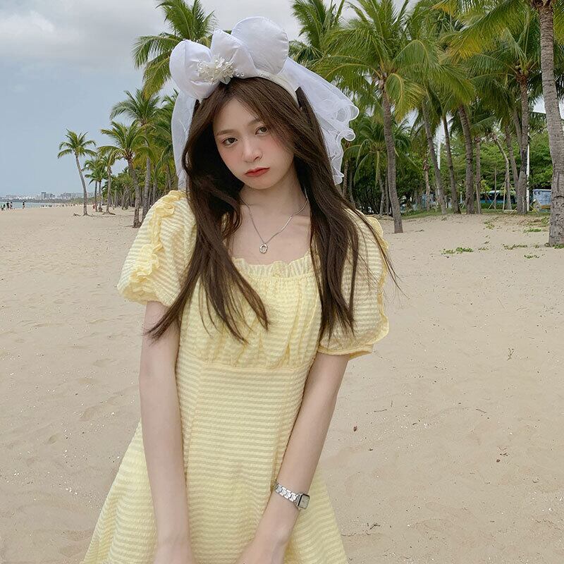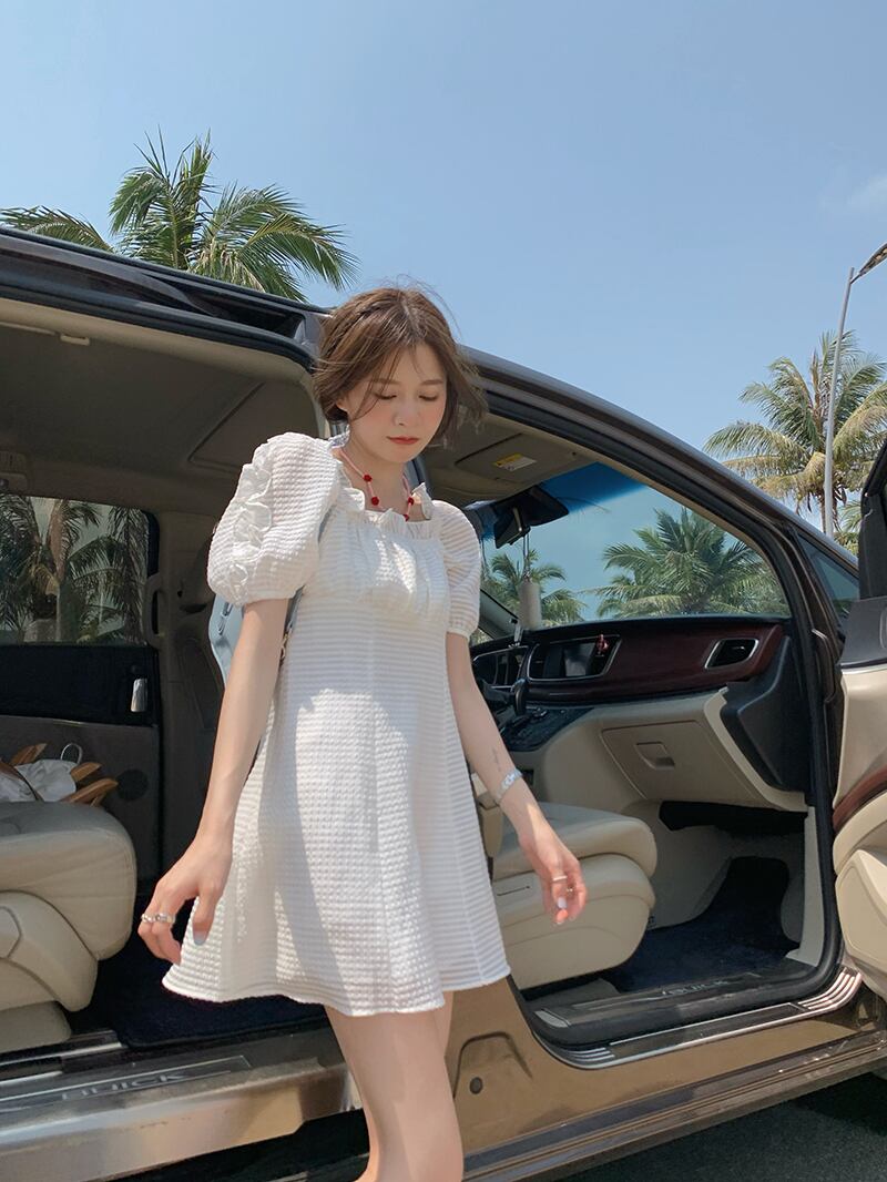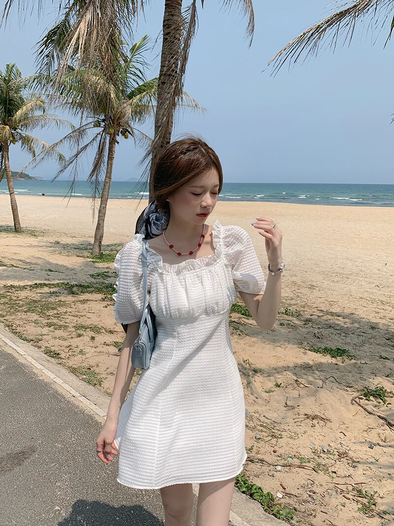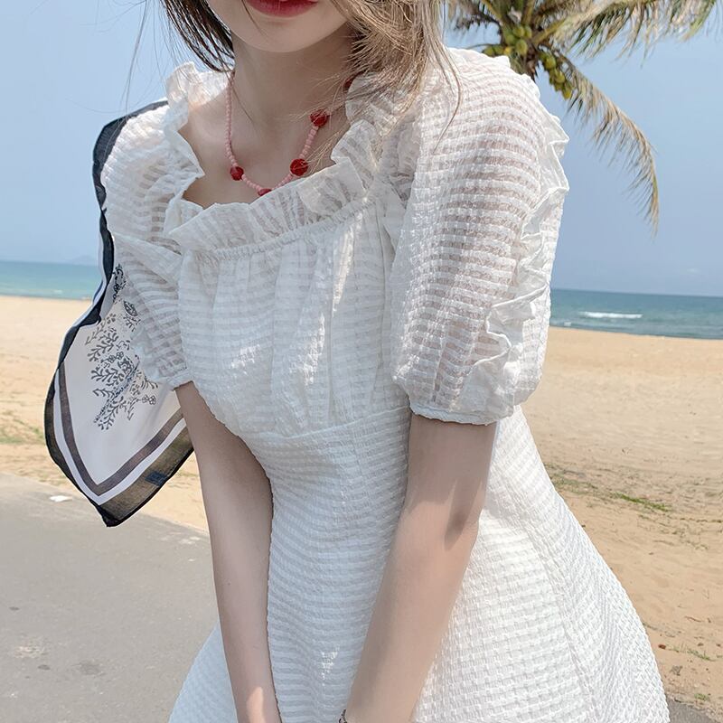 カラースリーブホワイトワンピース夏服レディースAラインスカート 大人ガーリー スウィート キュート カジュアル 夏物 スクウェア MONROE2061115187