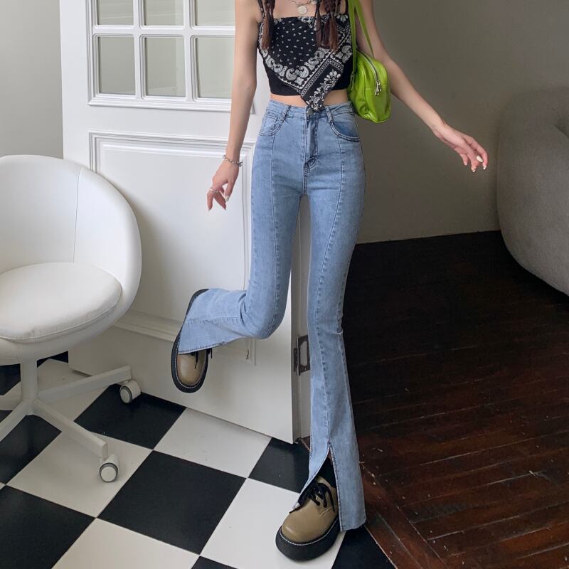スリムパンツ 夏服ジーンズ ハイウェストウェスト レッド 夏物 ウエスト MONROE29136770354