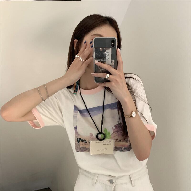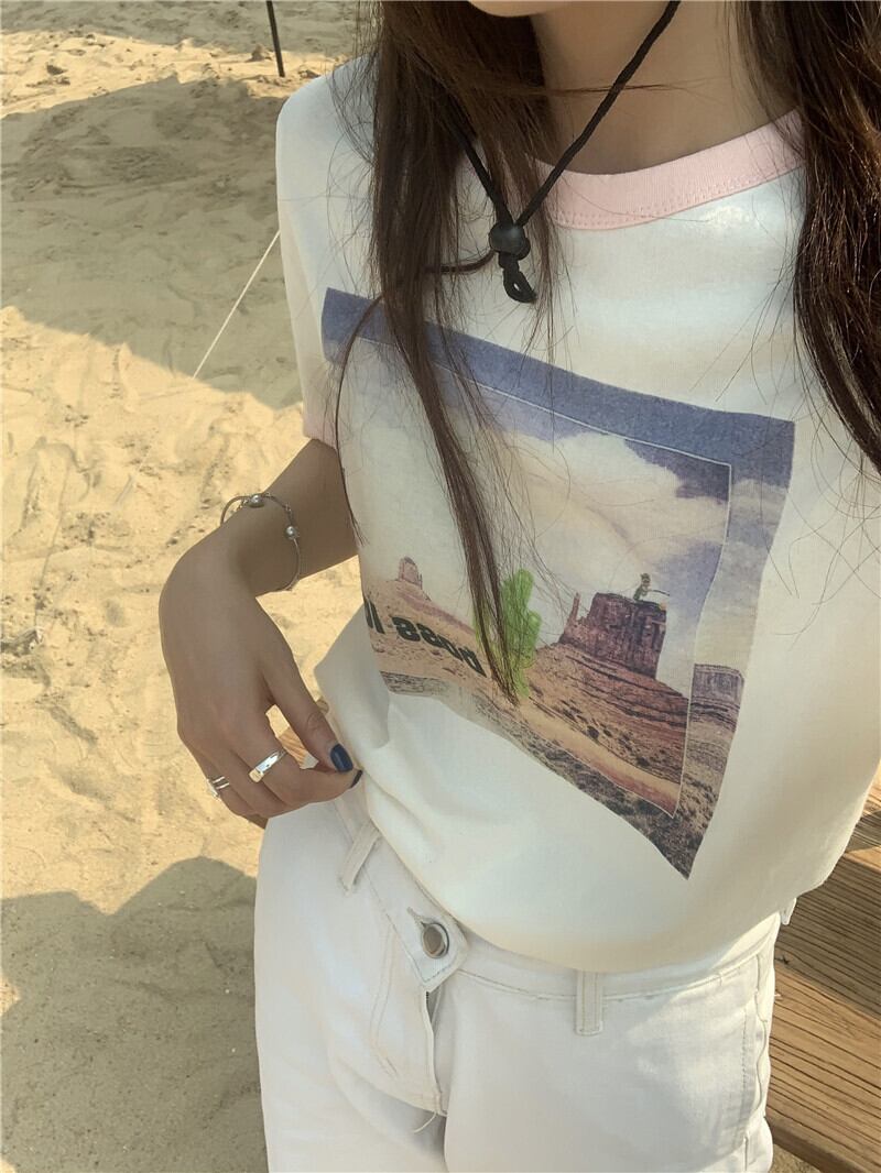 ホワイトプリントTシャツシャツ レディース夏服ゆったりトップス トレンド 夏物 MONROE39453748647
