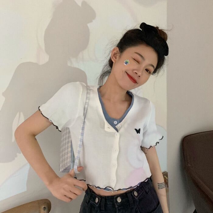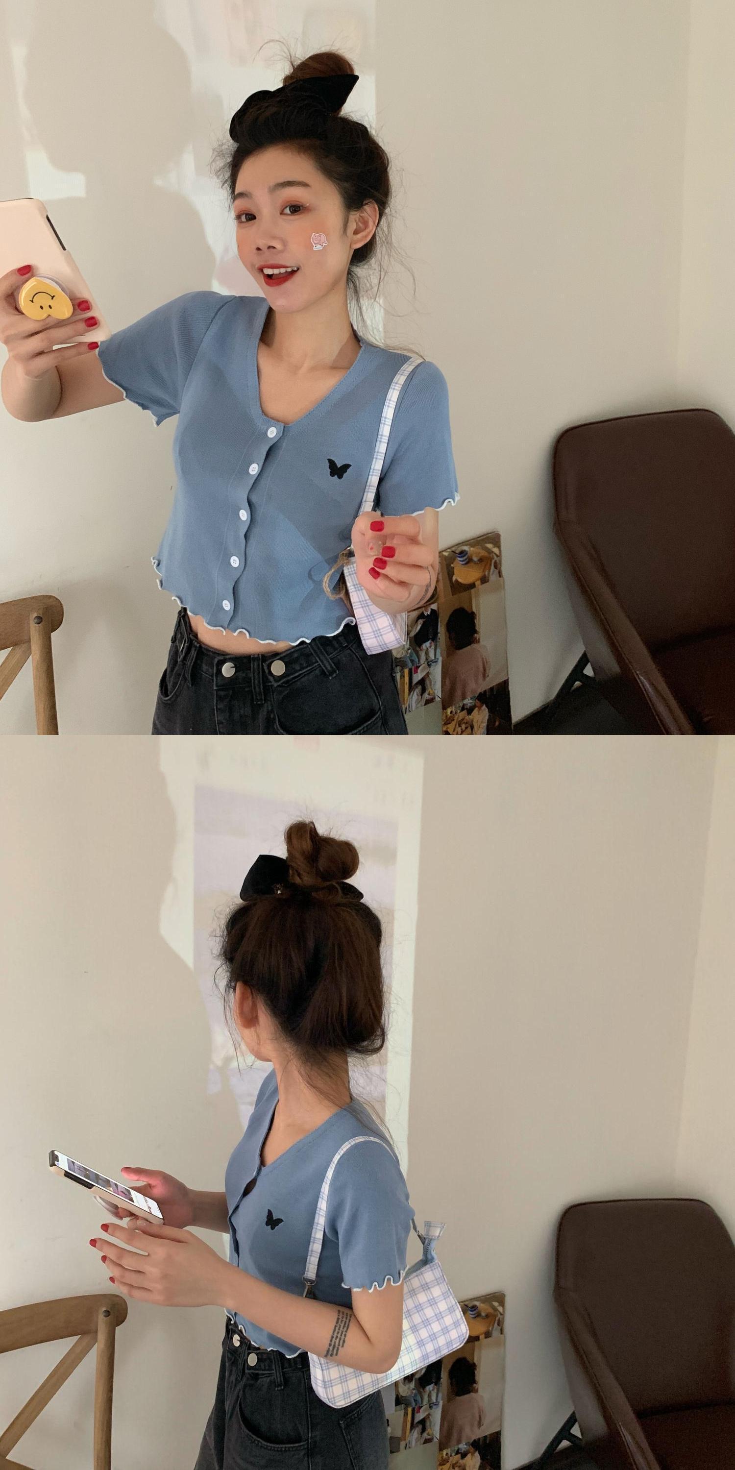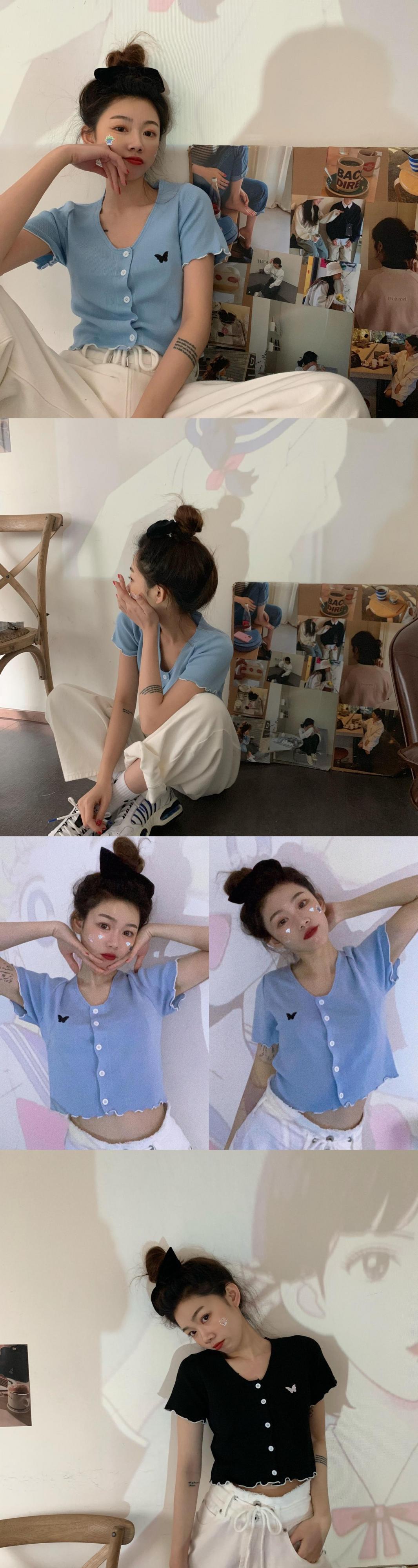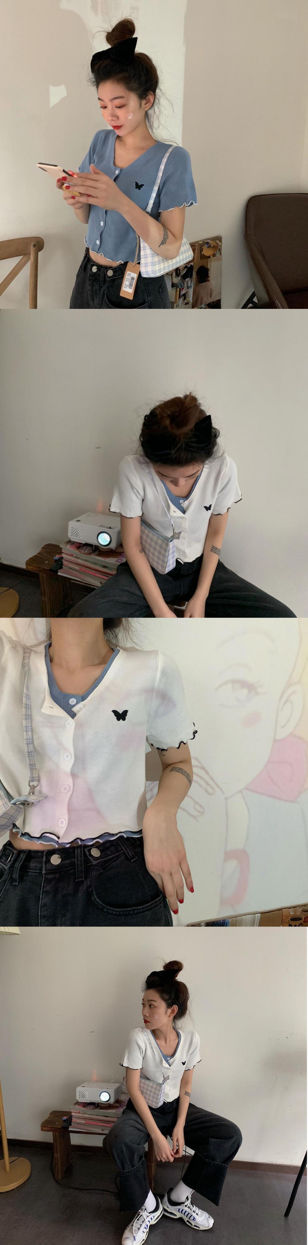 夏服Butterflyデザイン 半袖スリーブラウンドネックレーススリムカーディガン ショート レッド ハーフスリーブ 刺繍 夏物 Oネック MONROE88146321263