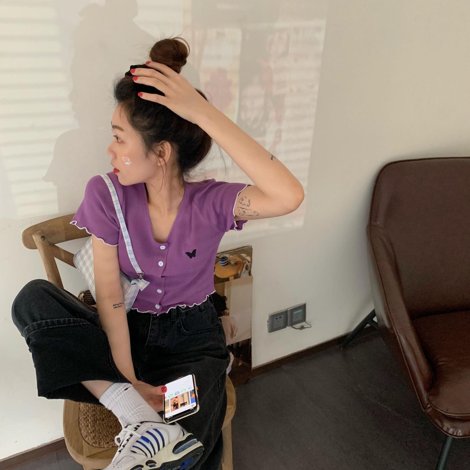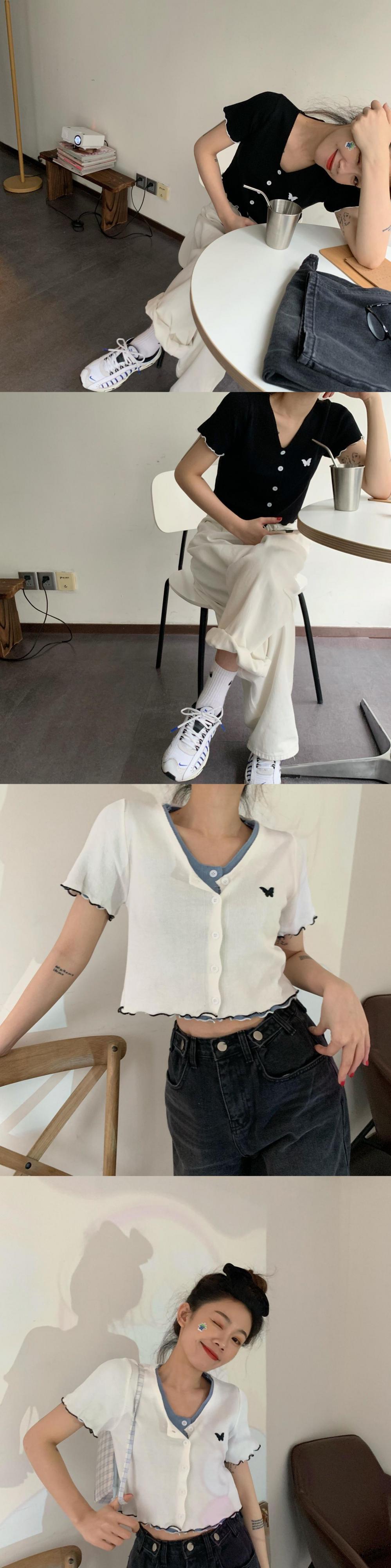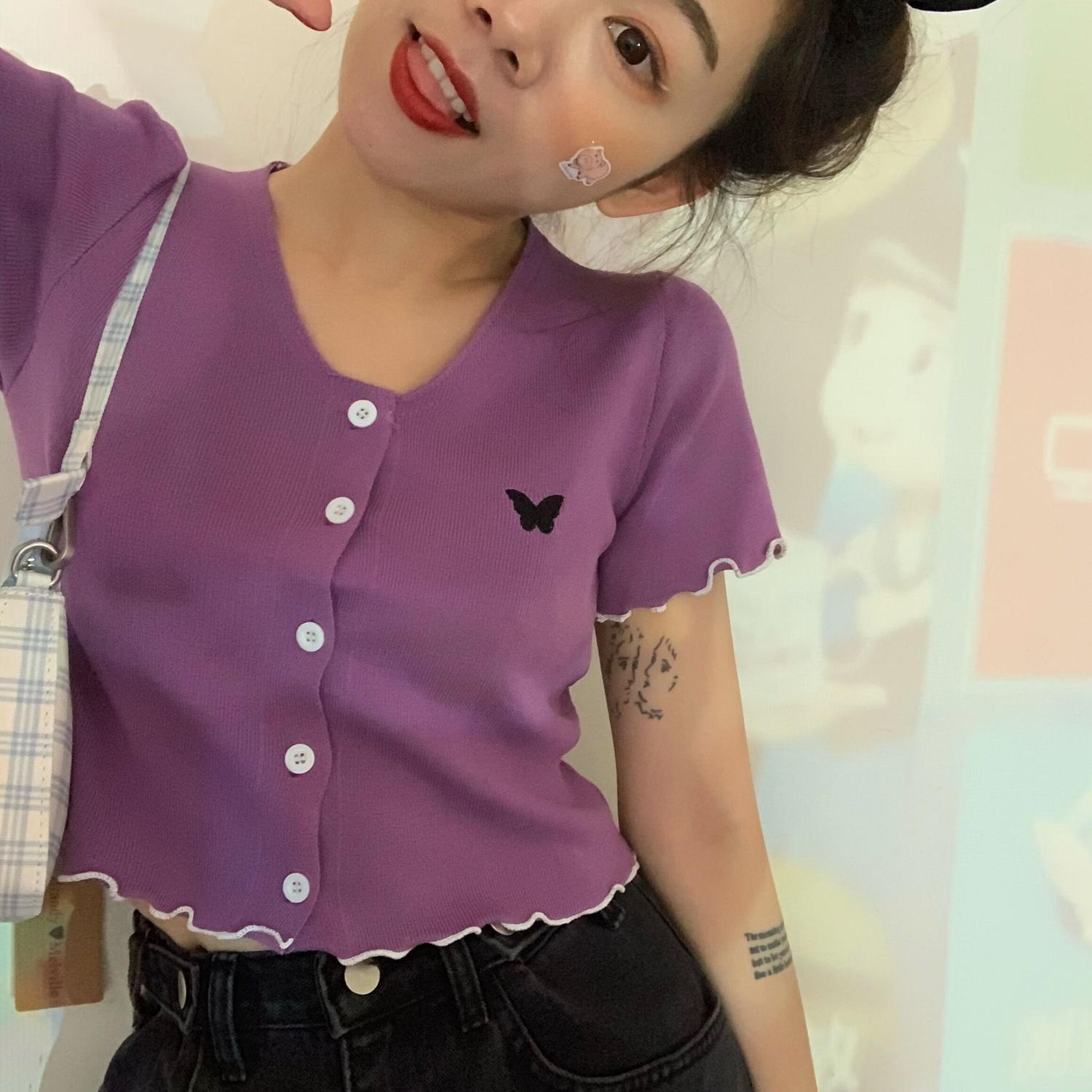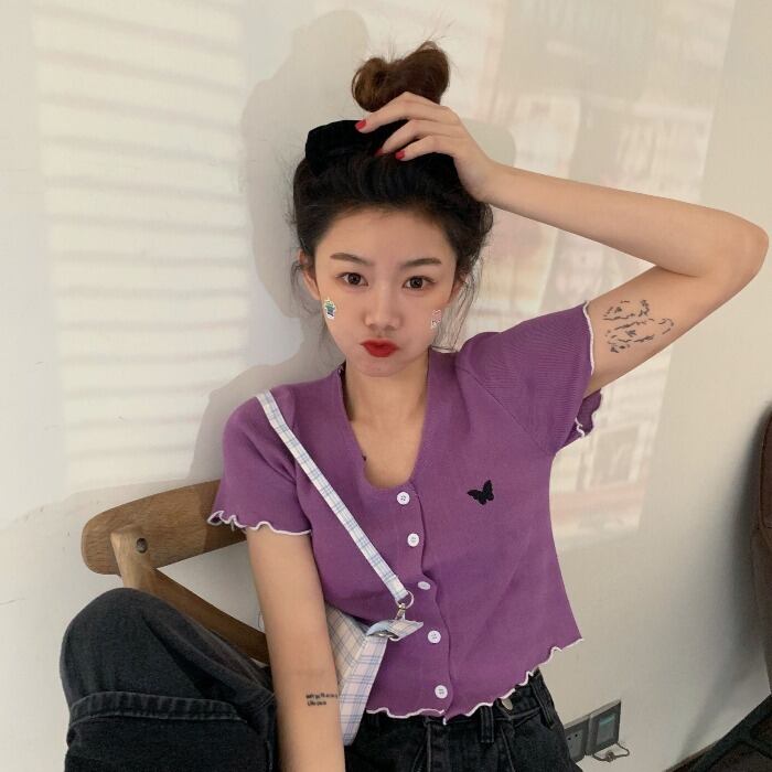 夏服Butterflyデザイン 半袖スリーブラウンドネックレーススリムカーディガン ショート レッド ハーフスリーブ 刺繍 夏物 Oネック MONROE88146321263