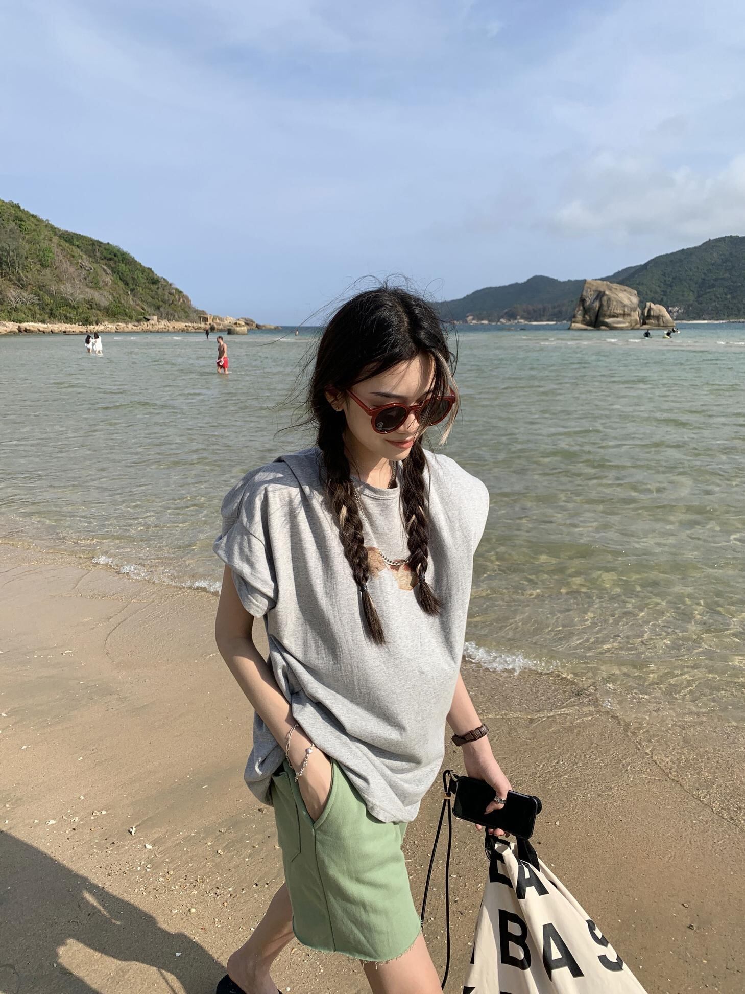 グリーンカジュアルショーツ レディース夏服ギャザーパンツ 薄手ルーズトレンド 夏物 MONROE6190111570