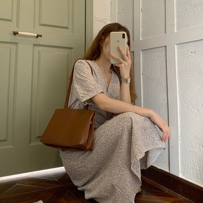 スタンダードVネックフローラルワンピースレディースシフォンロングスカート 夏服 レトロ 大人ガーリー スウィート キュート カジュアル 夏物 花柄 MONROE36925608886