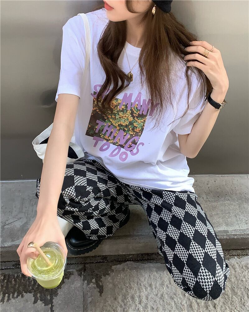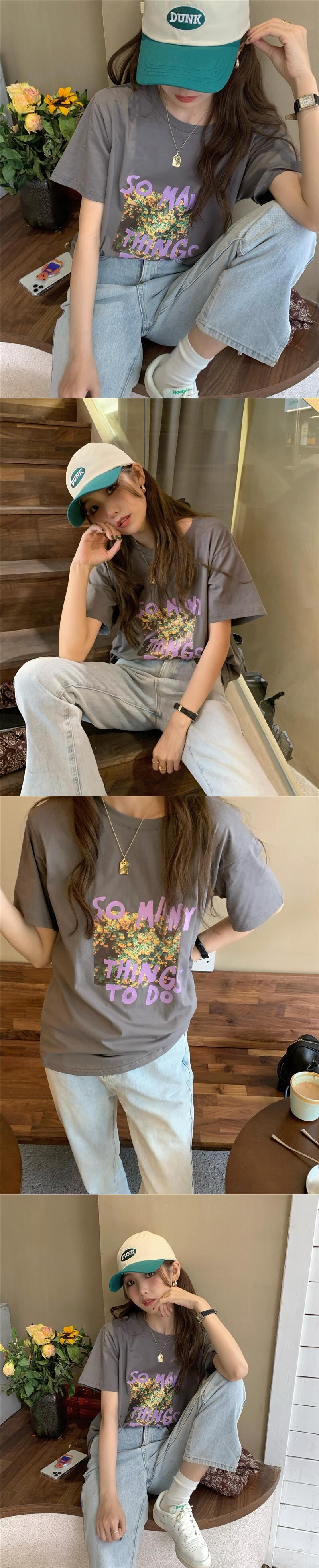 グレープリントルーズTシャツレディース夏服トレンド コットン 夏物 ピュア MONROE88711362541