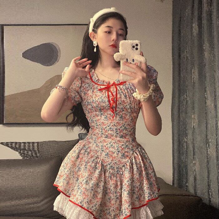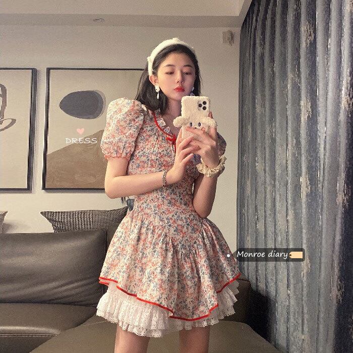 スタンダードスリーブフローラルワンピースレディース夏服スリムスカート レトロ 大人ガーリー スウィート キュート カジュアル 夏物 花柄 MONROE52167078370