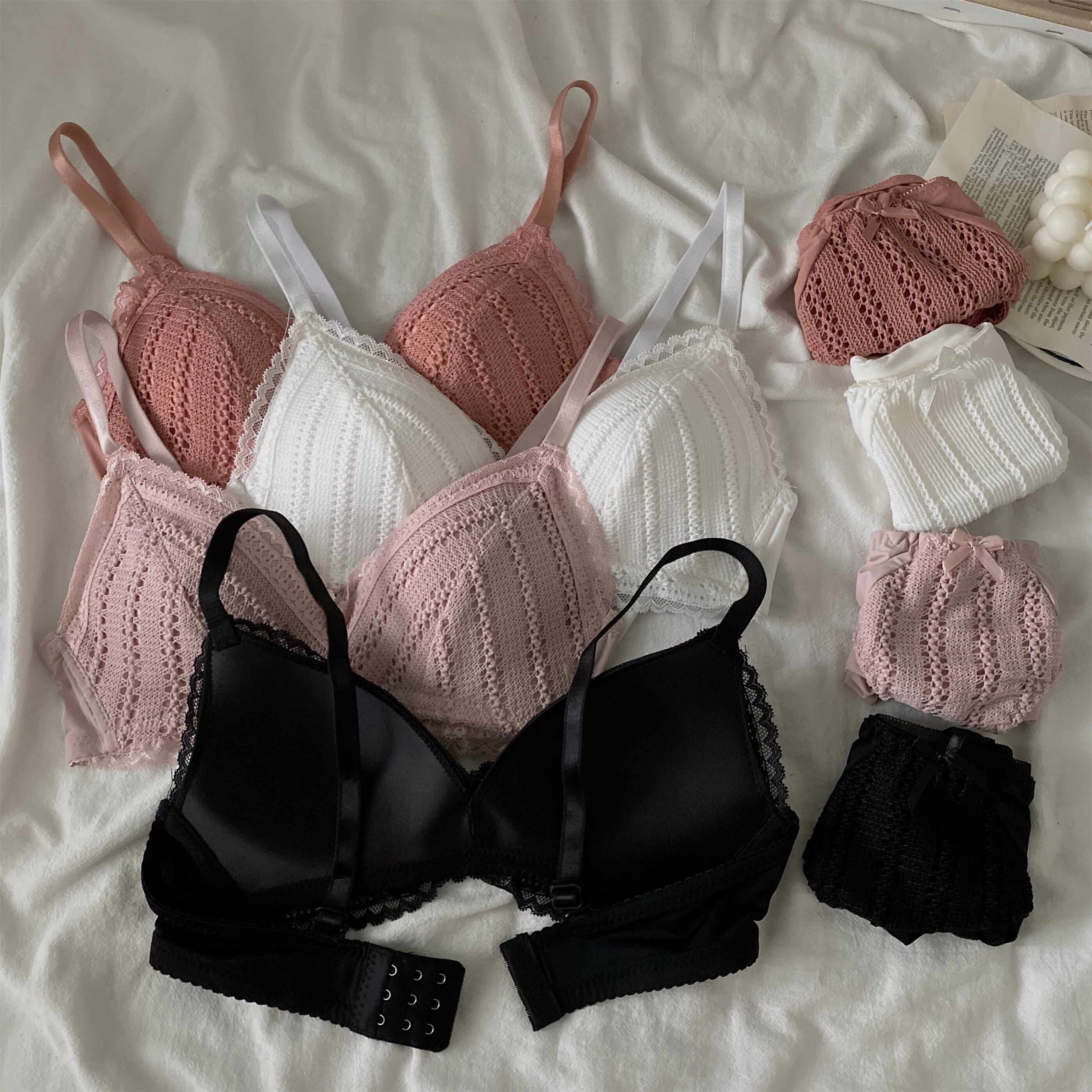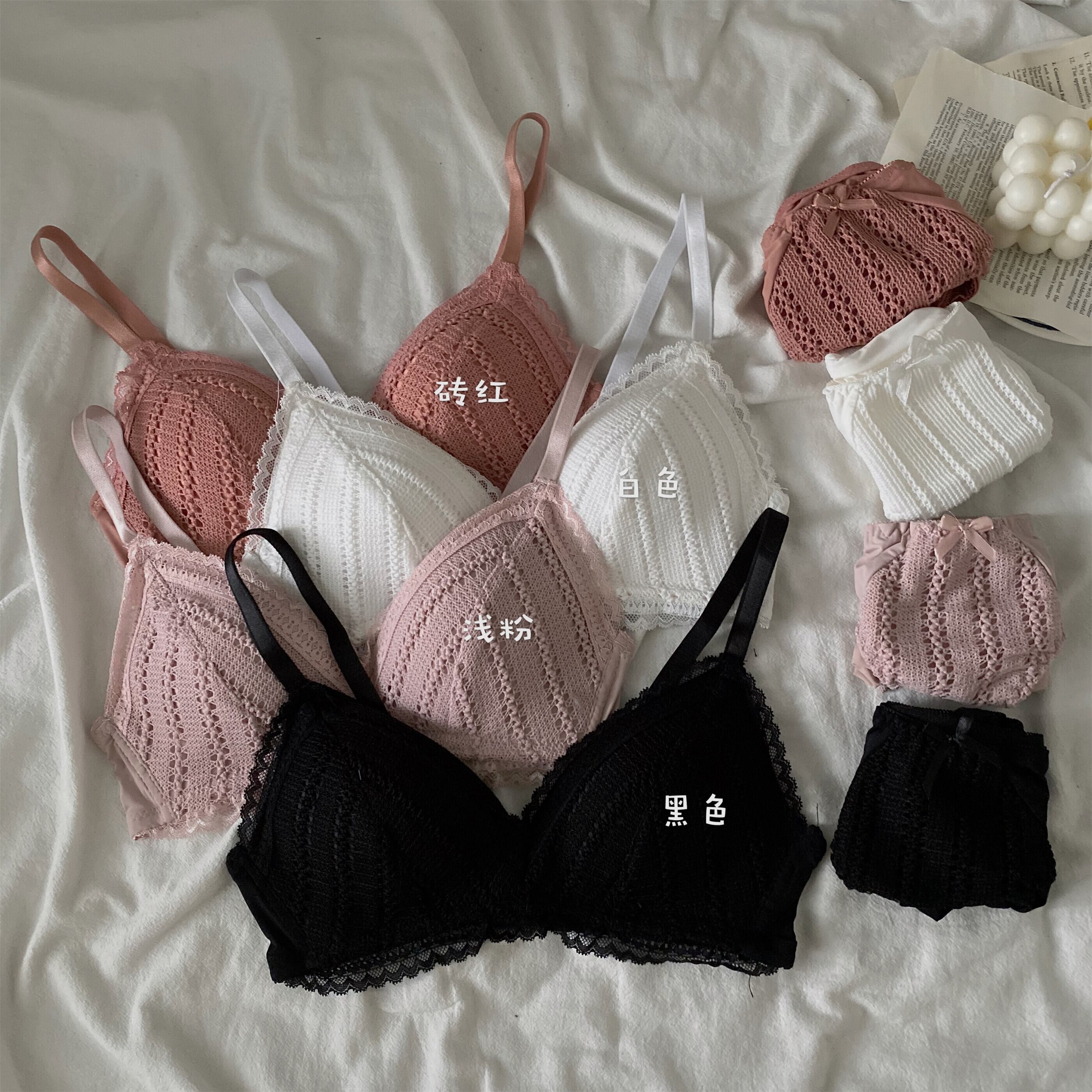 スプリングリング 韓国ファッション薄手レーストライアングルブラ セット レディース 春物 指輪 スタイル YY83085099756