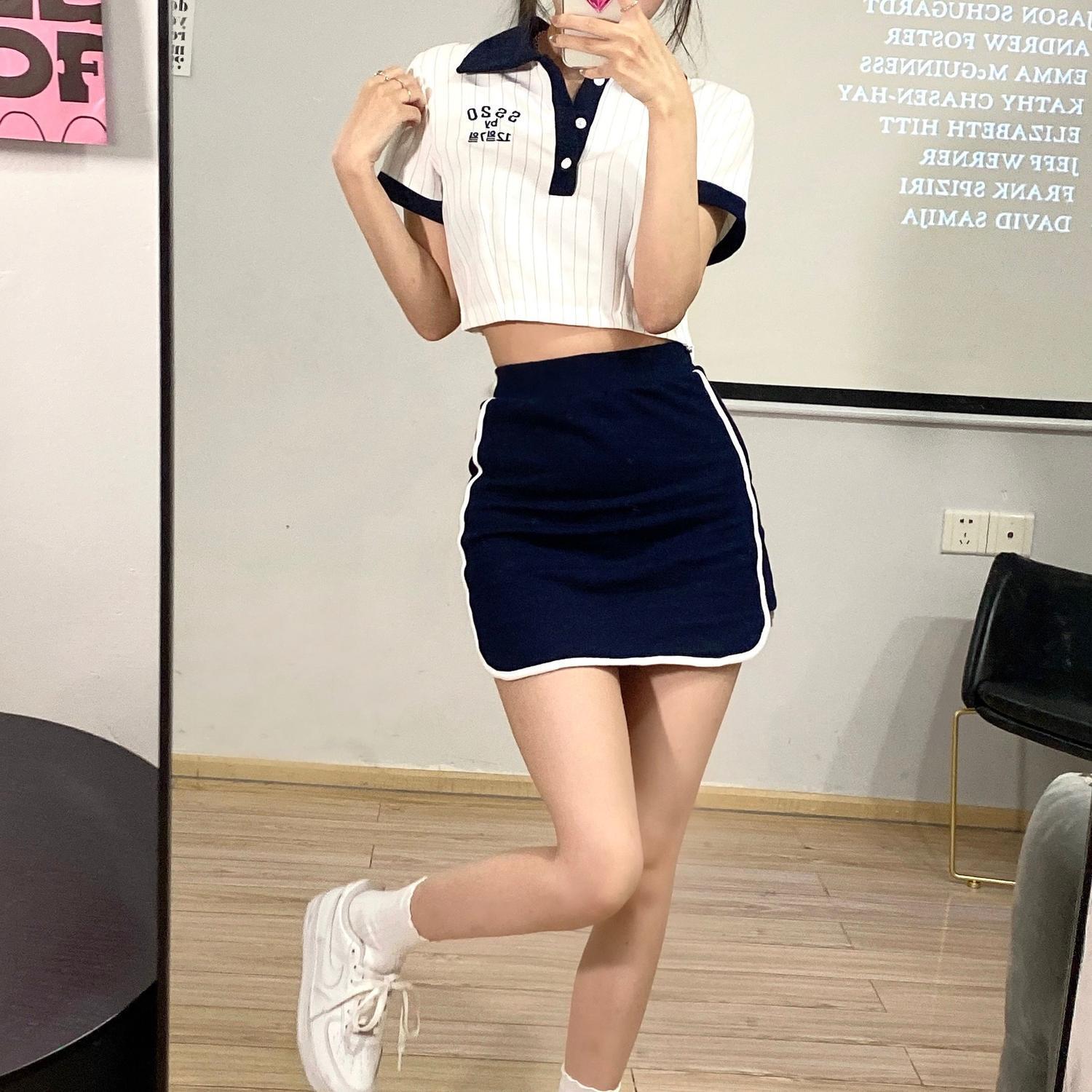 色:ネイビーブルーのスカートS,ネイビーブルーのスカートM,ポロトップ
