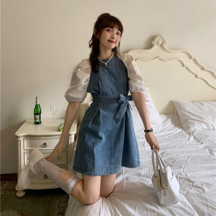 ワンピースレディーススタンダード薄手スカート 夏服Aライン レトロ 夏物 ミドル丈 MONROE86089478660