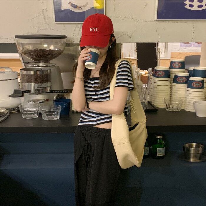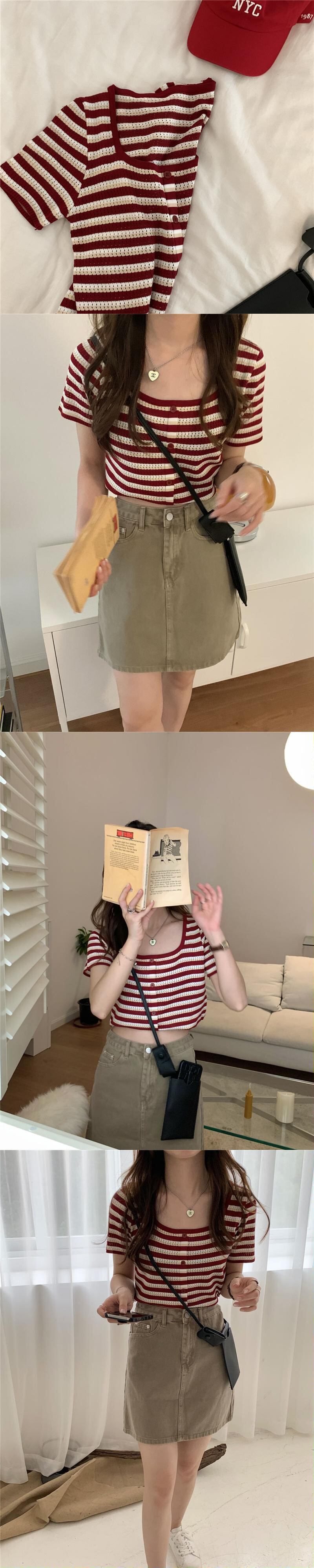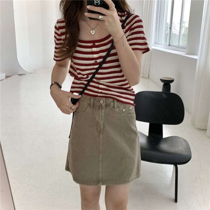ストライプスリムショートTシャツ夏服レディースニットクロップトップ トップス 夏物 スクウェア MONROE27711788699