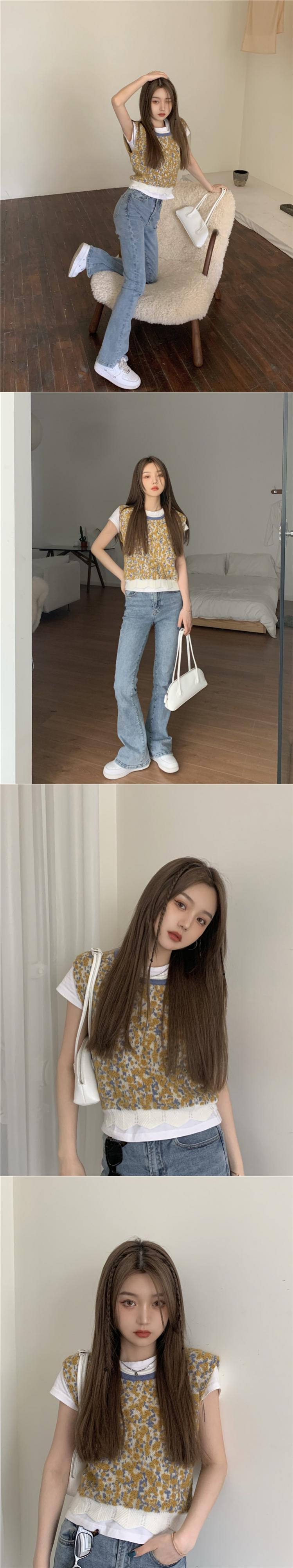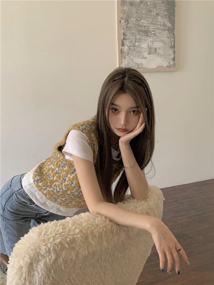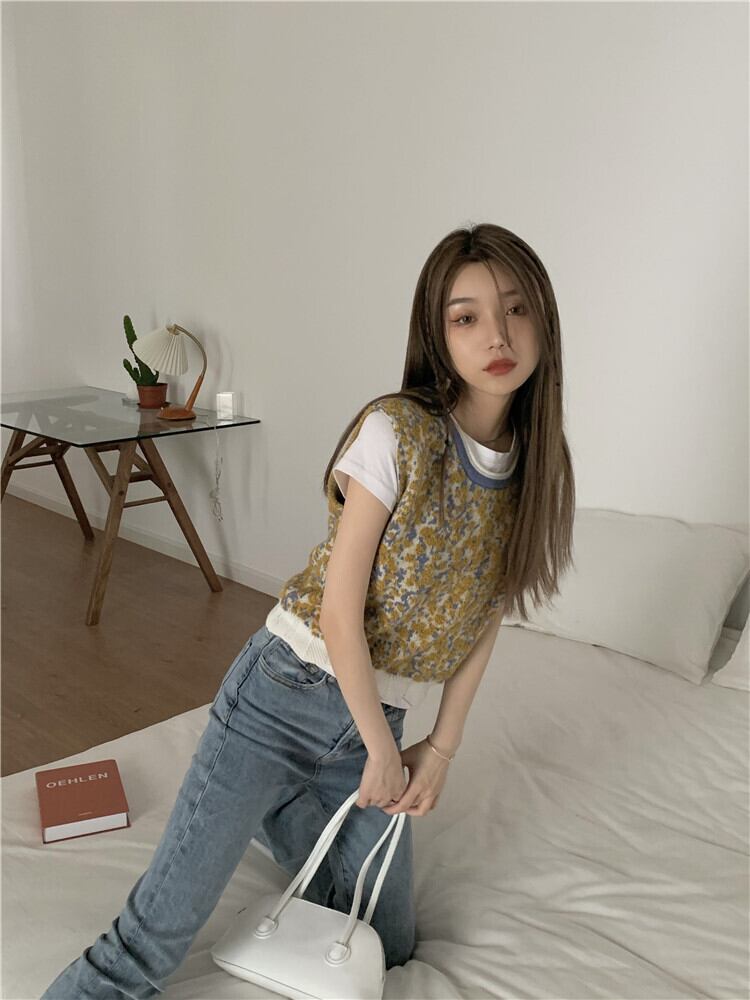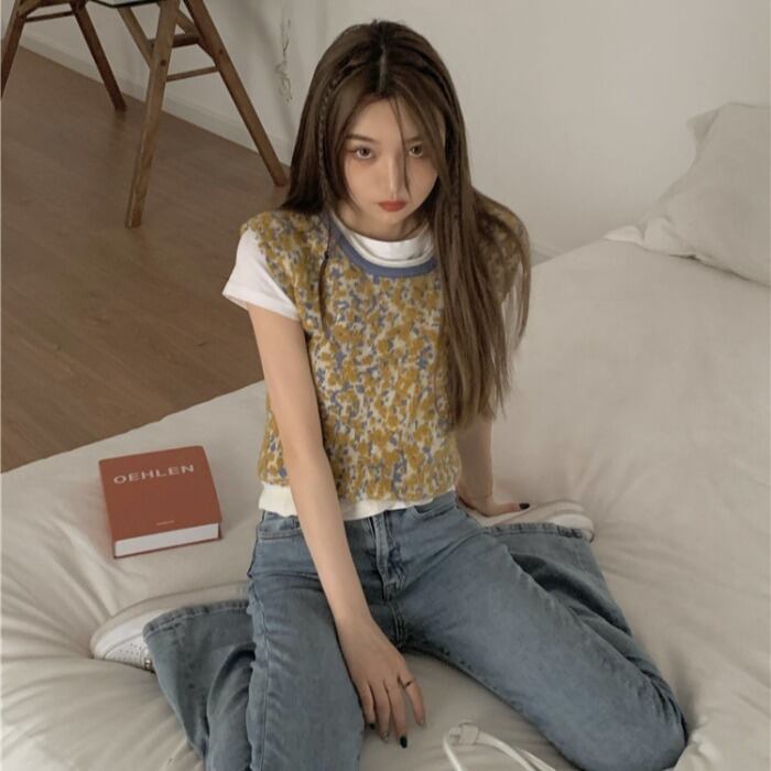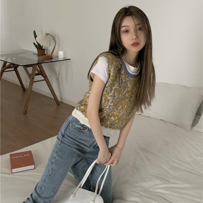 スタンダードニットレディースルーズノースリーブトップス トレンド夏服ショートセーター レトロ 夏物 ウエスト MONROE64266416899