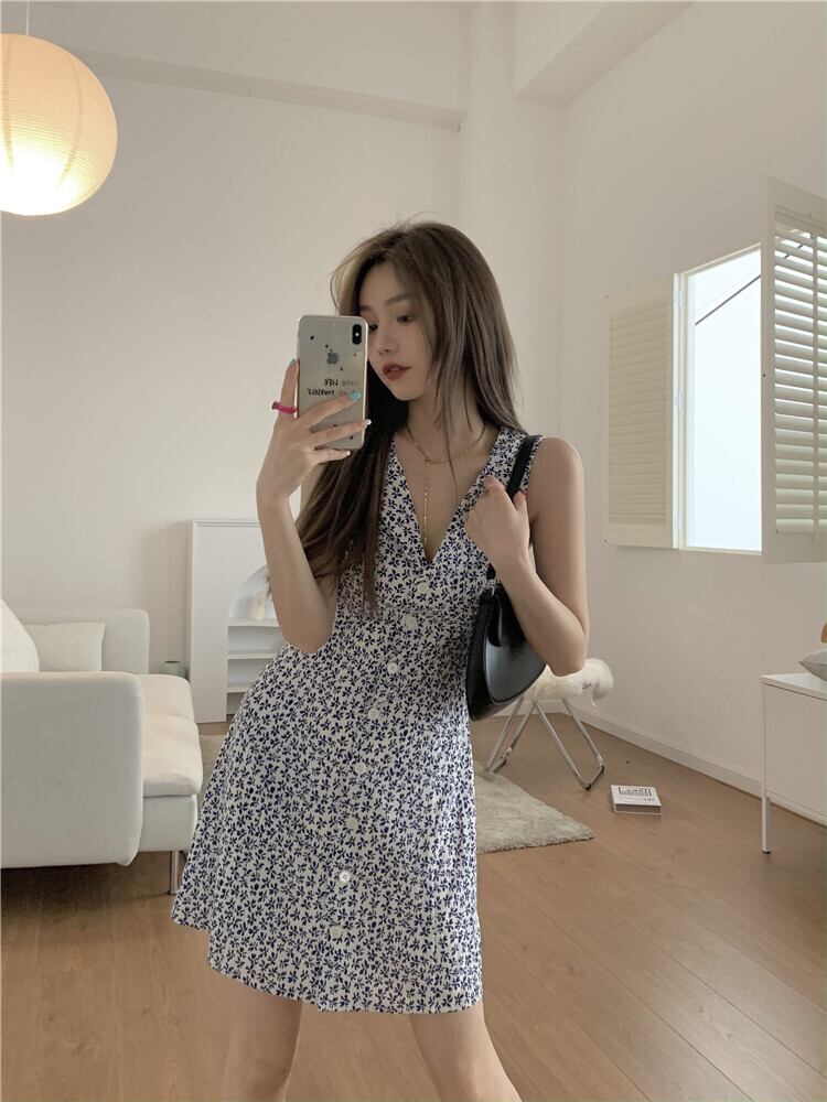 フローラルワンピースレディーススタンダードスカート ノースリーブ夏服ショート レトロ 夏物 花柄 MONROE4549516648
